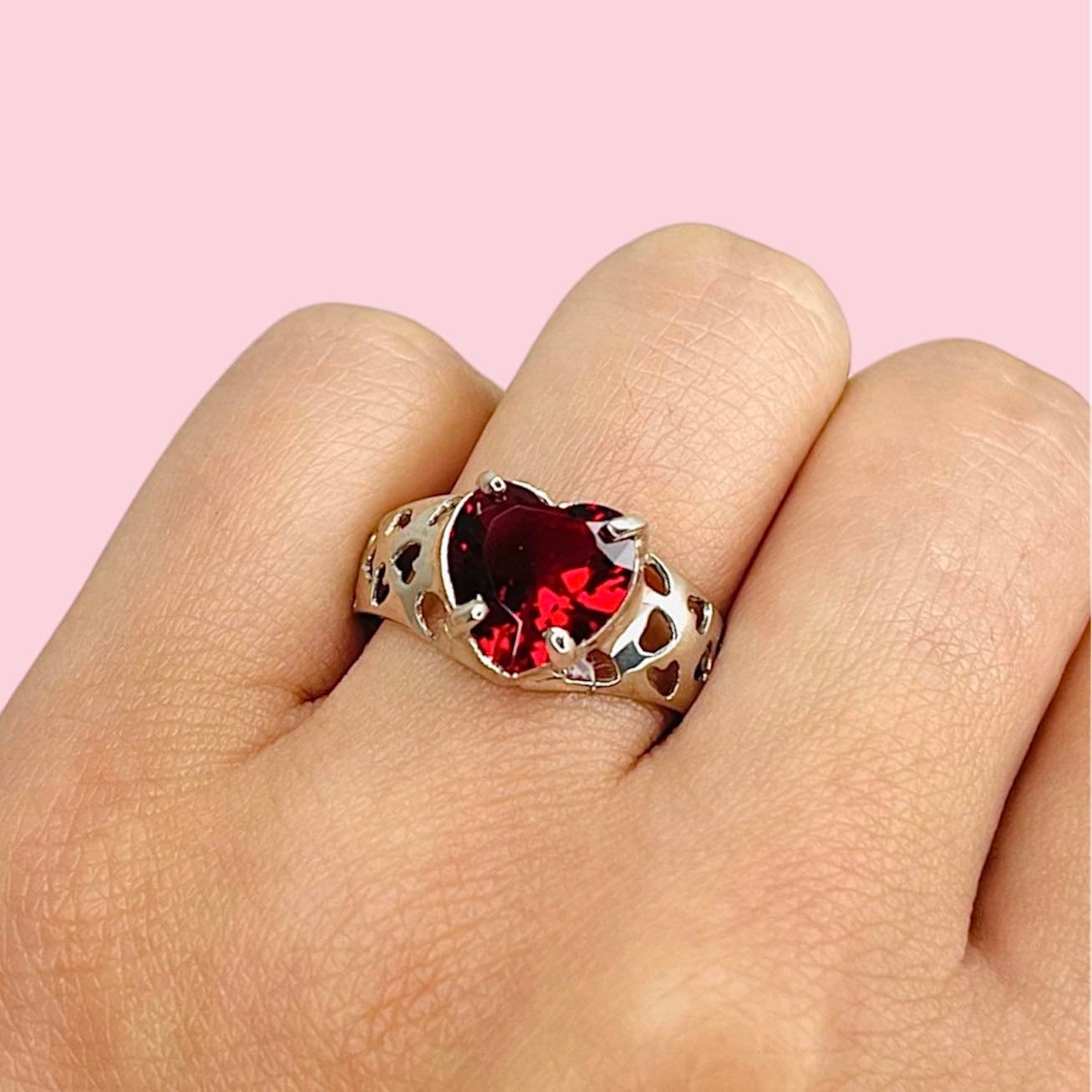 Anillo Corazon cubic Rojo con corazones calados de Plata 925