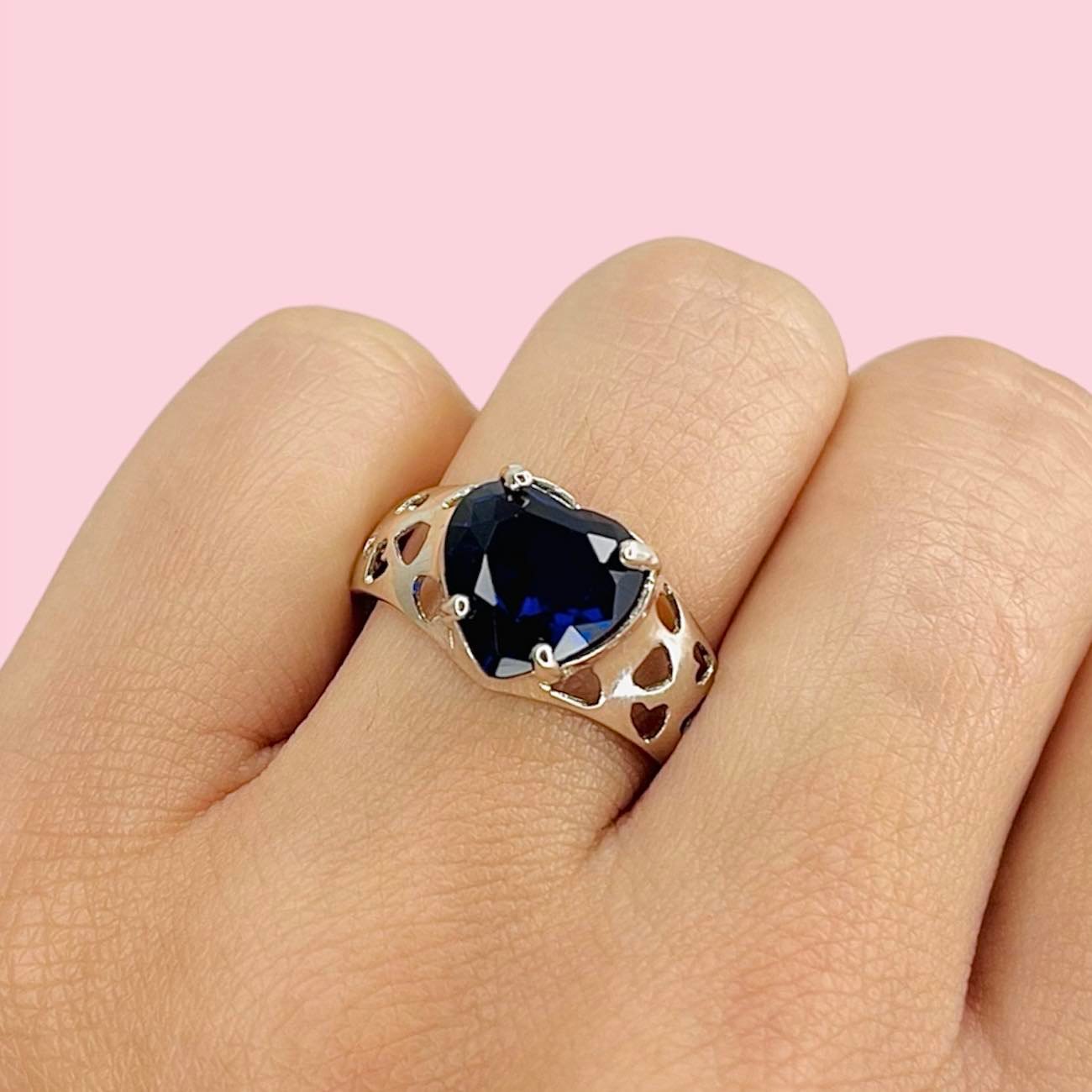 Anillo Corazon cubic Azul con corazones calados de Plata 925