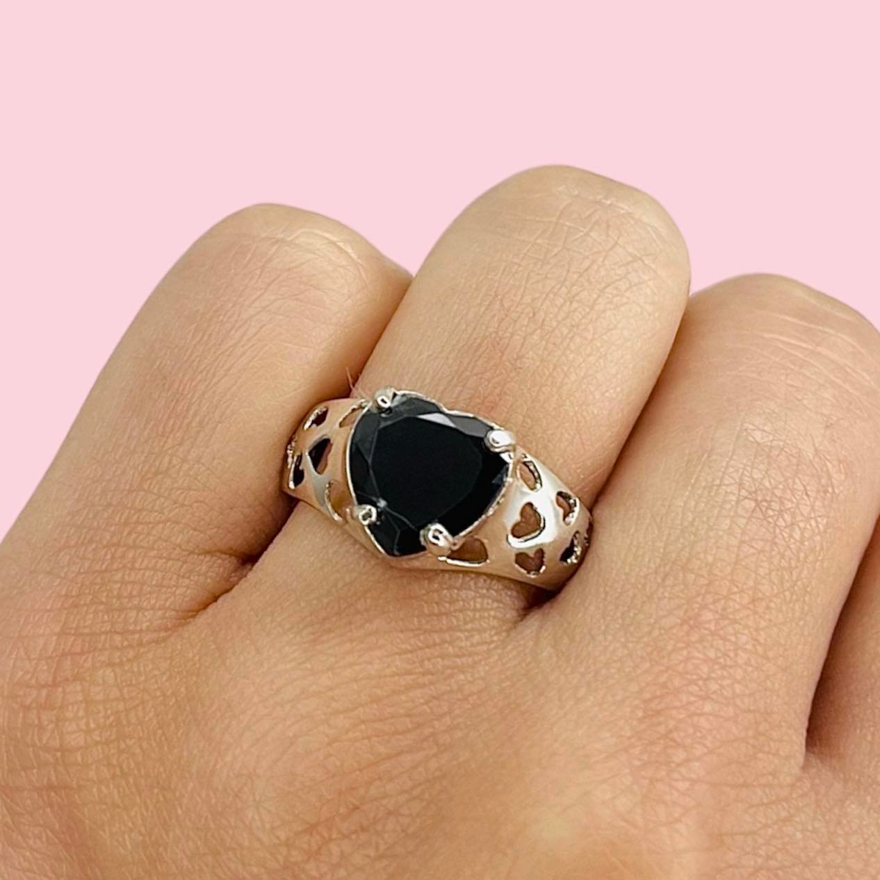 Anillo Corazon cubic Negro con corazones calados de Plata 925