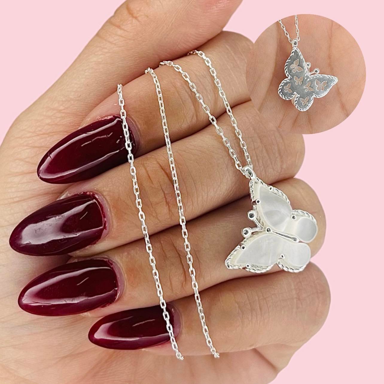 Conjunto Cadena Rolito con Dije Mariposa Nacar de Plata 925
