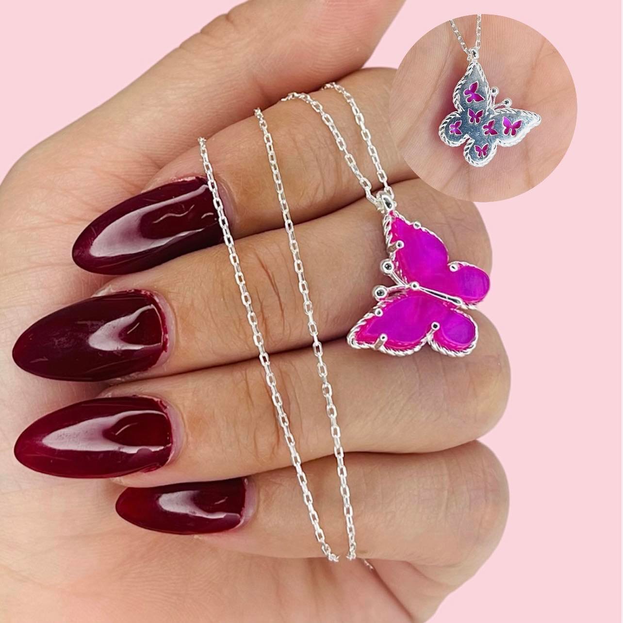 Conjunto Cadena Rolito con Dije Mariposa Fuscia de Plata 925