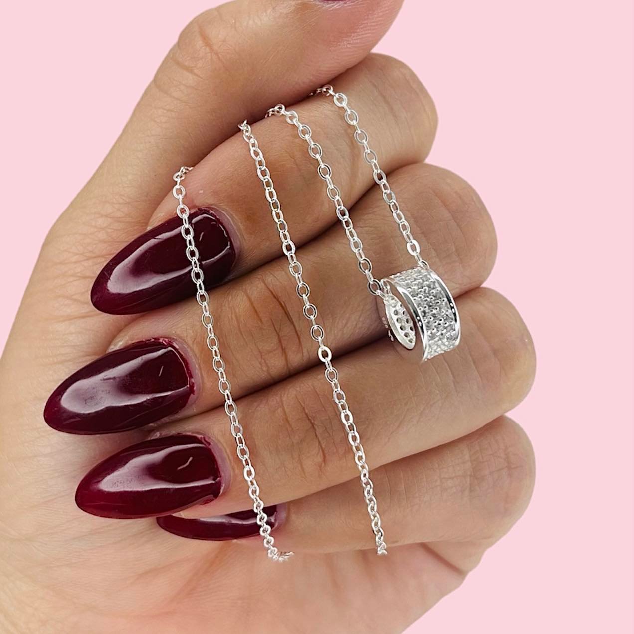 Conjunto Cadena espejado con Dije Sin Fin cubic blanco de Plata 925