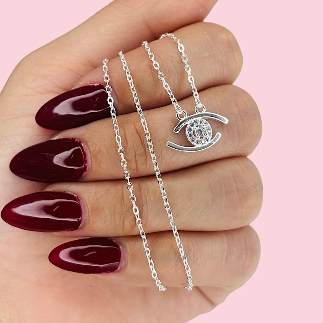 Conjunto Cadena rolito con Dije Ojito Protector cubic blanco de Plata 925