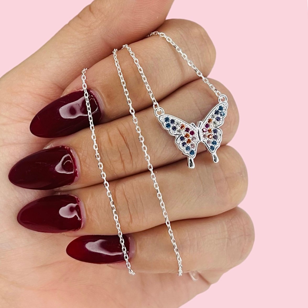Conjunto Cadena rolito con Mariposa Multicolor de Plata 925