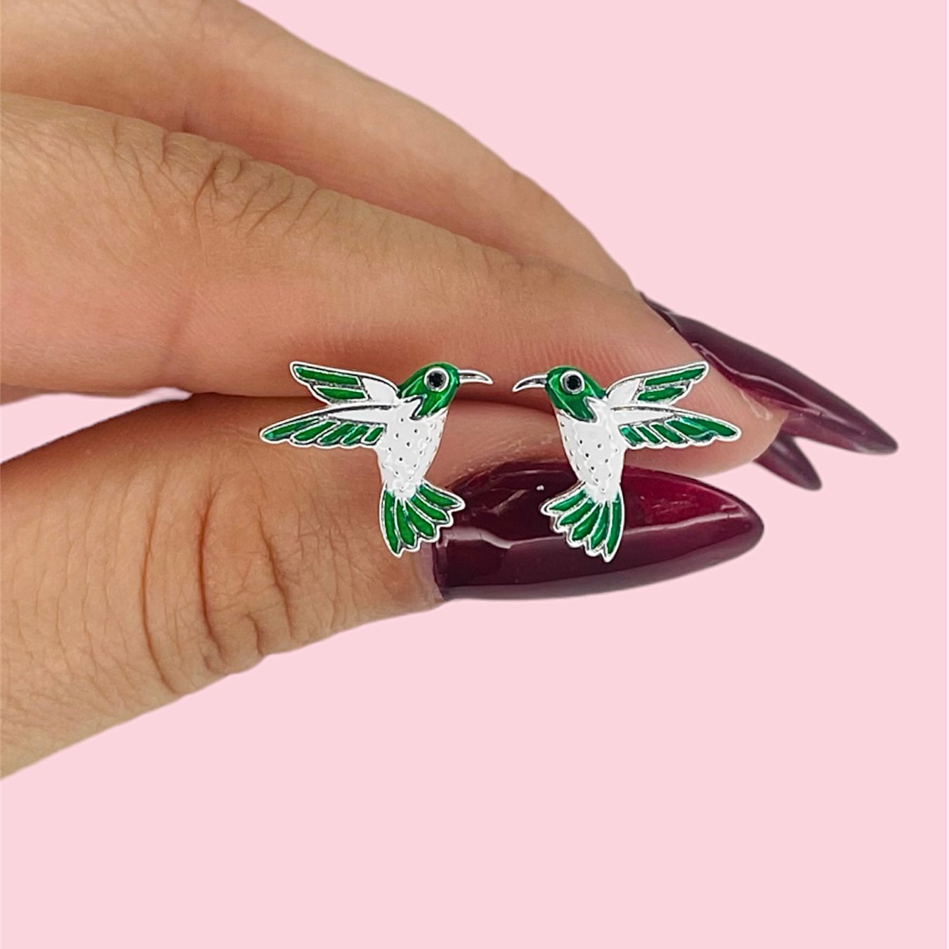 Aros Colibri tropical esmaltado de Plata 925