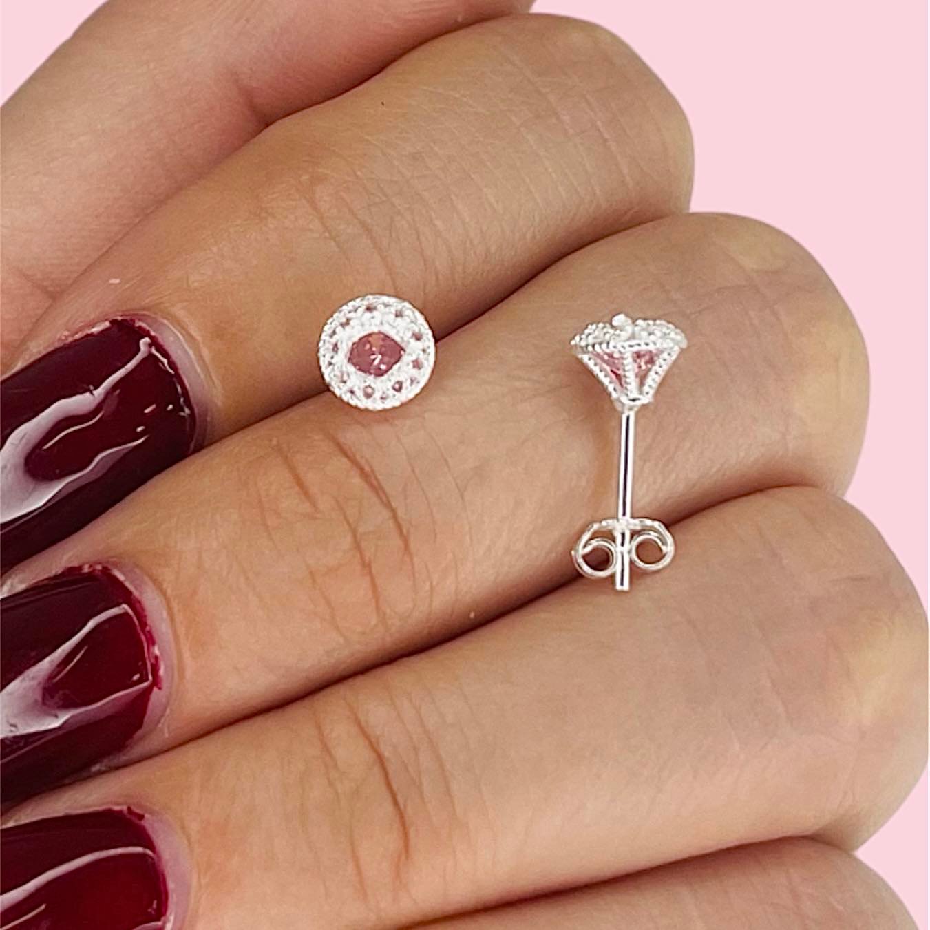 Aros Cubic engarce tipo diamante cubic Rosa de Plata 925