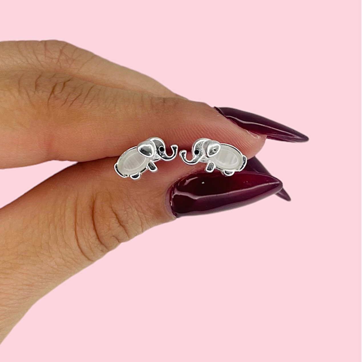 Aros Elefante bebe piedra ojo de gato blanco de Plata 925
