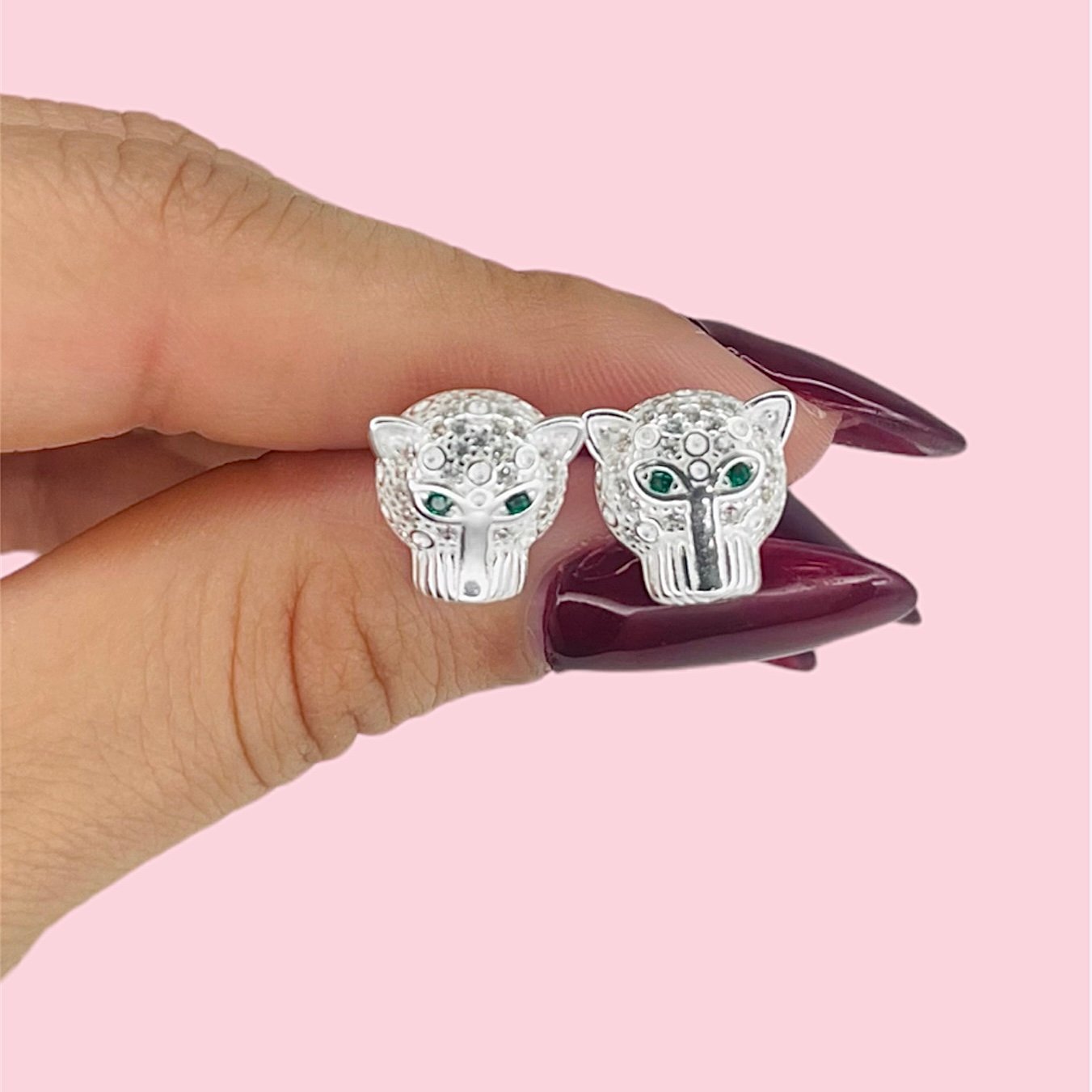 Aros Pantera cubic verde de Plata 925