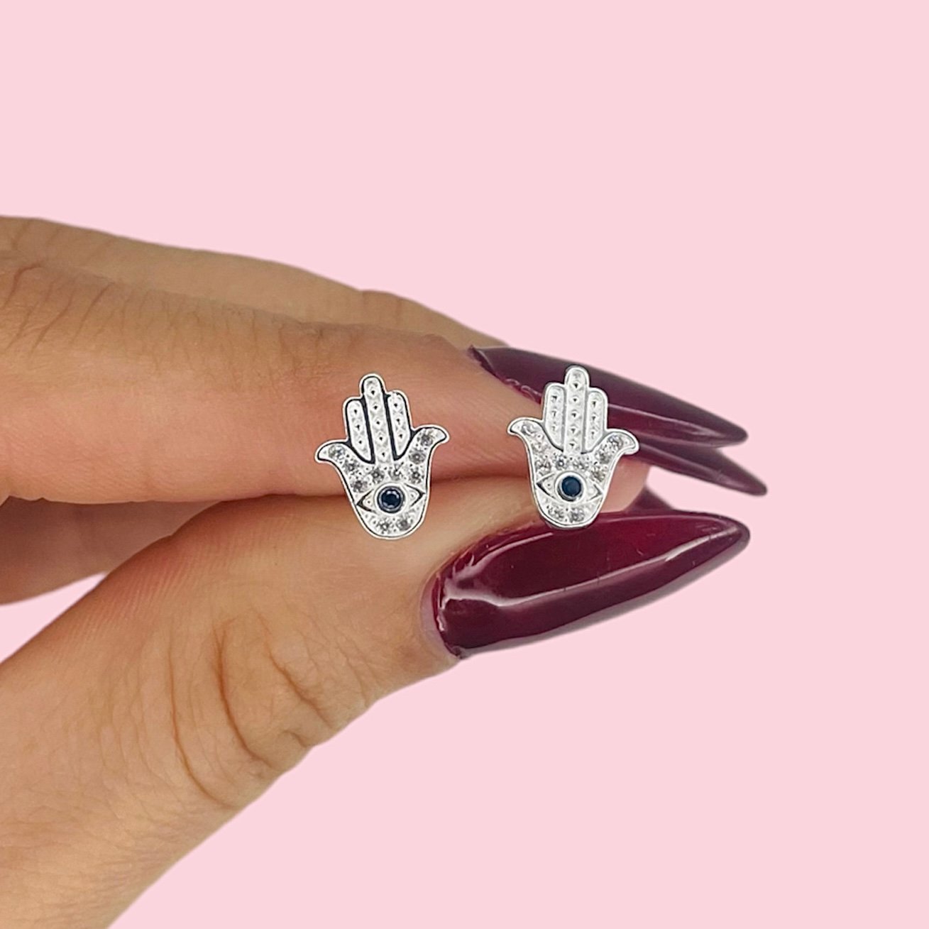 Artículo: AR 519Aros Mano de Fatima con cubic azul