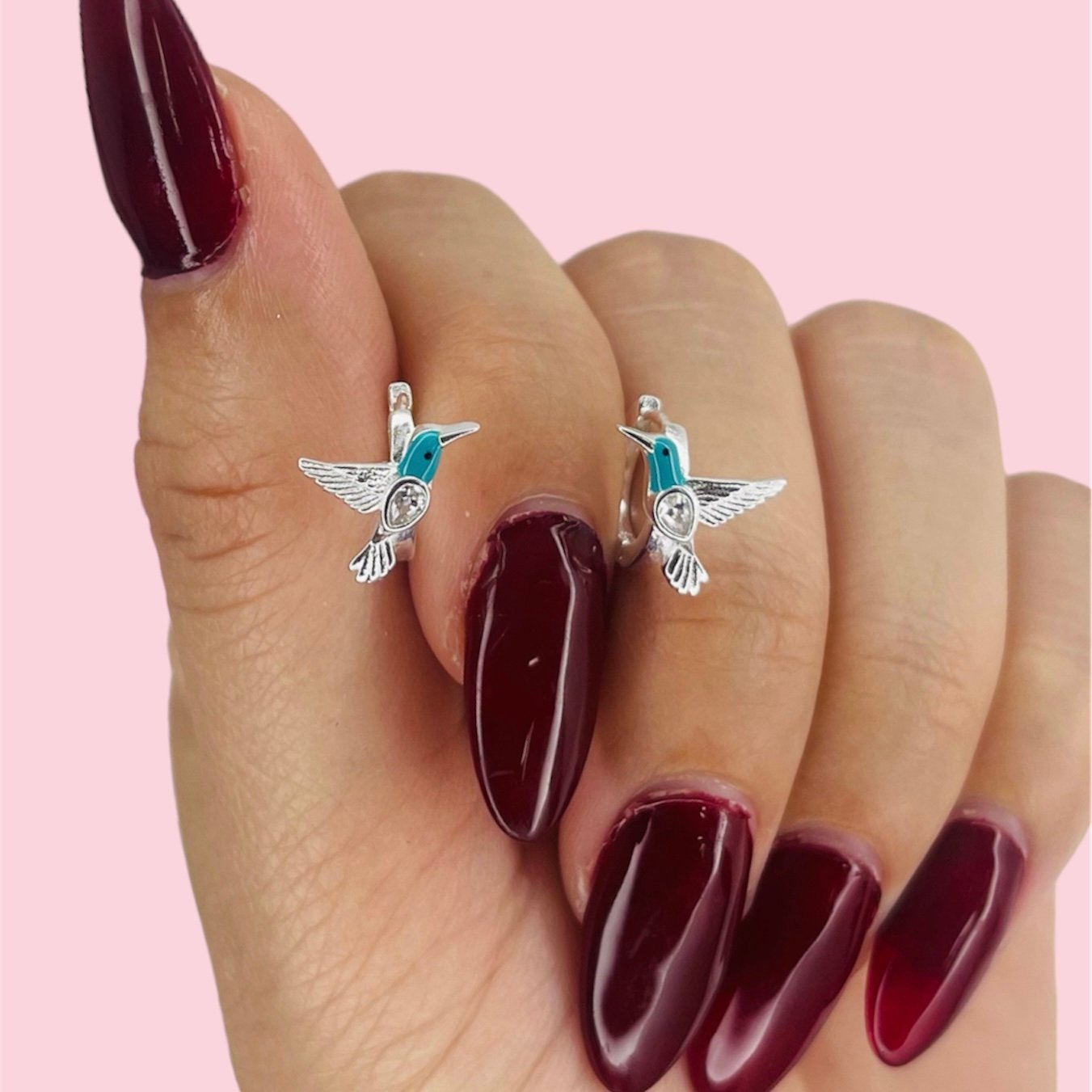 Aros Argolla con colibri esmaltado de Plata 925