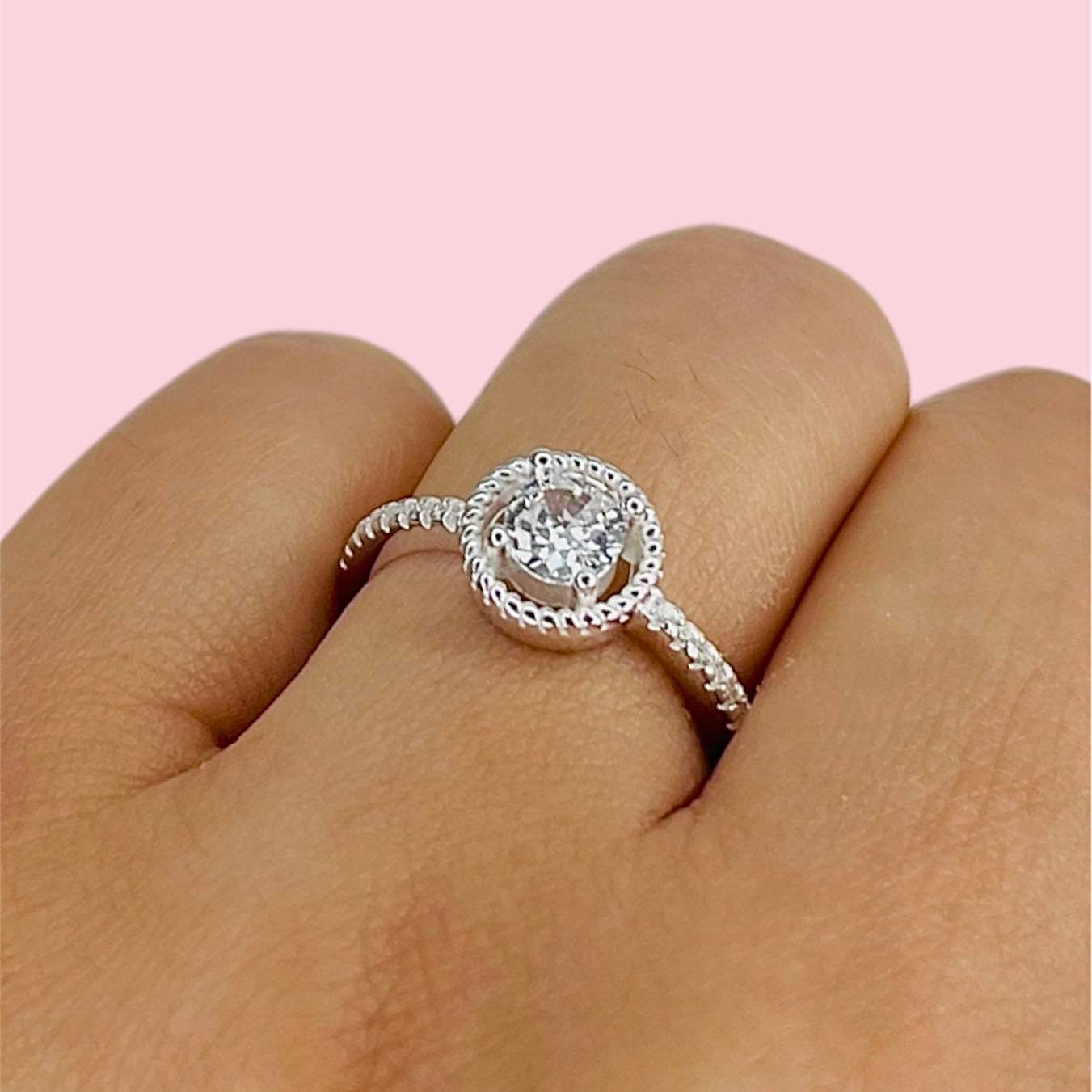 Anillo de Compromiso cubic blanco de Plata Italiana