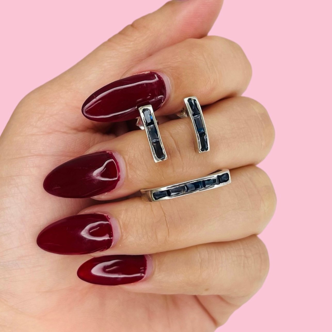 Conjunto Anillo y Aros Medio Sinfin Baguette Azul de Plata 925