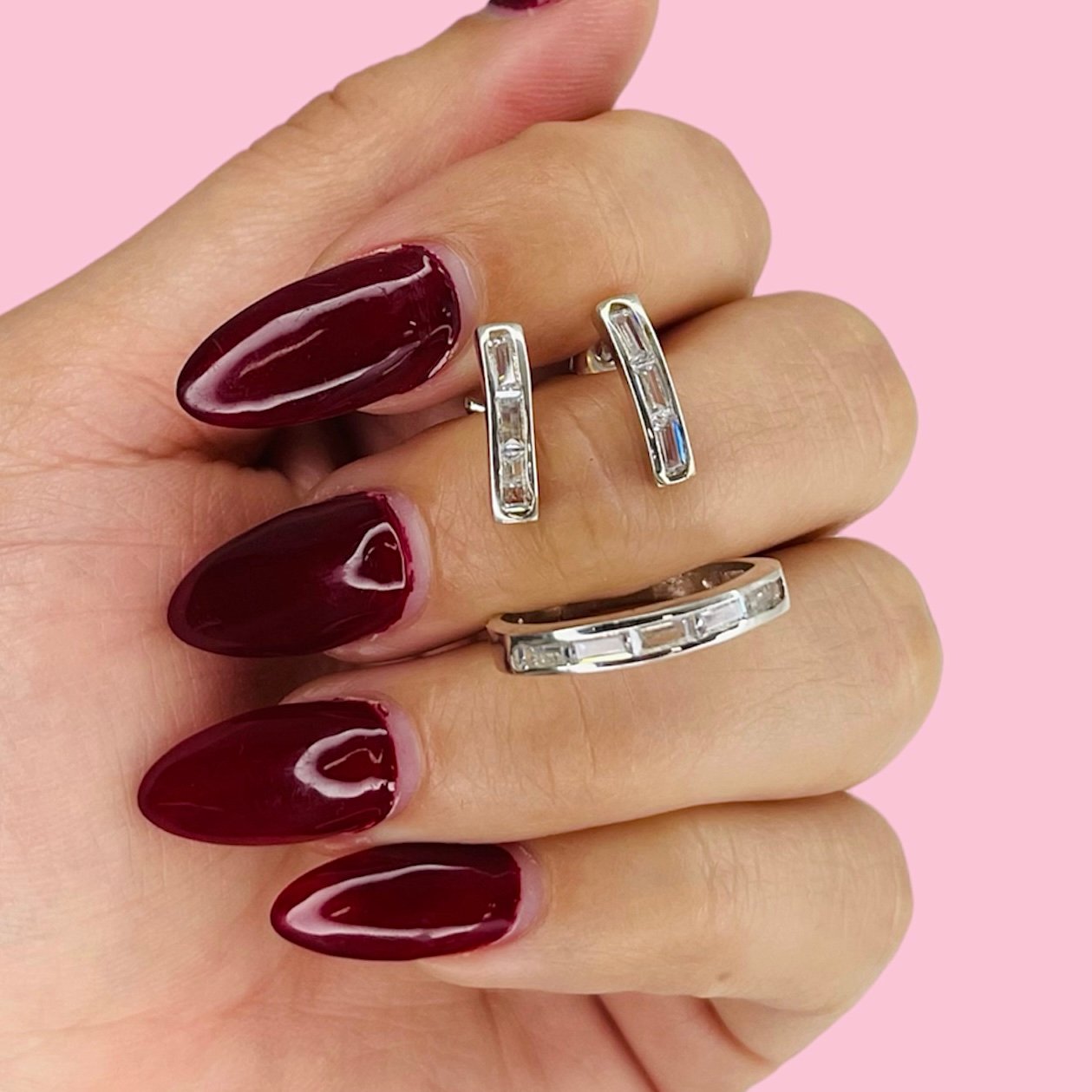 Conjunto Anillo y Aros Medio Sinfin Baguette Blanco de Plata 925