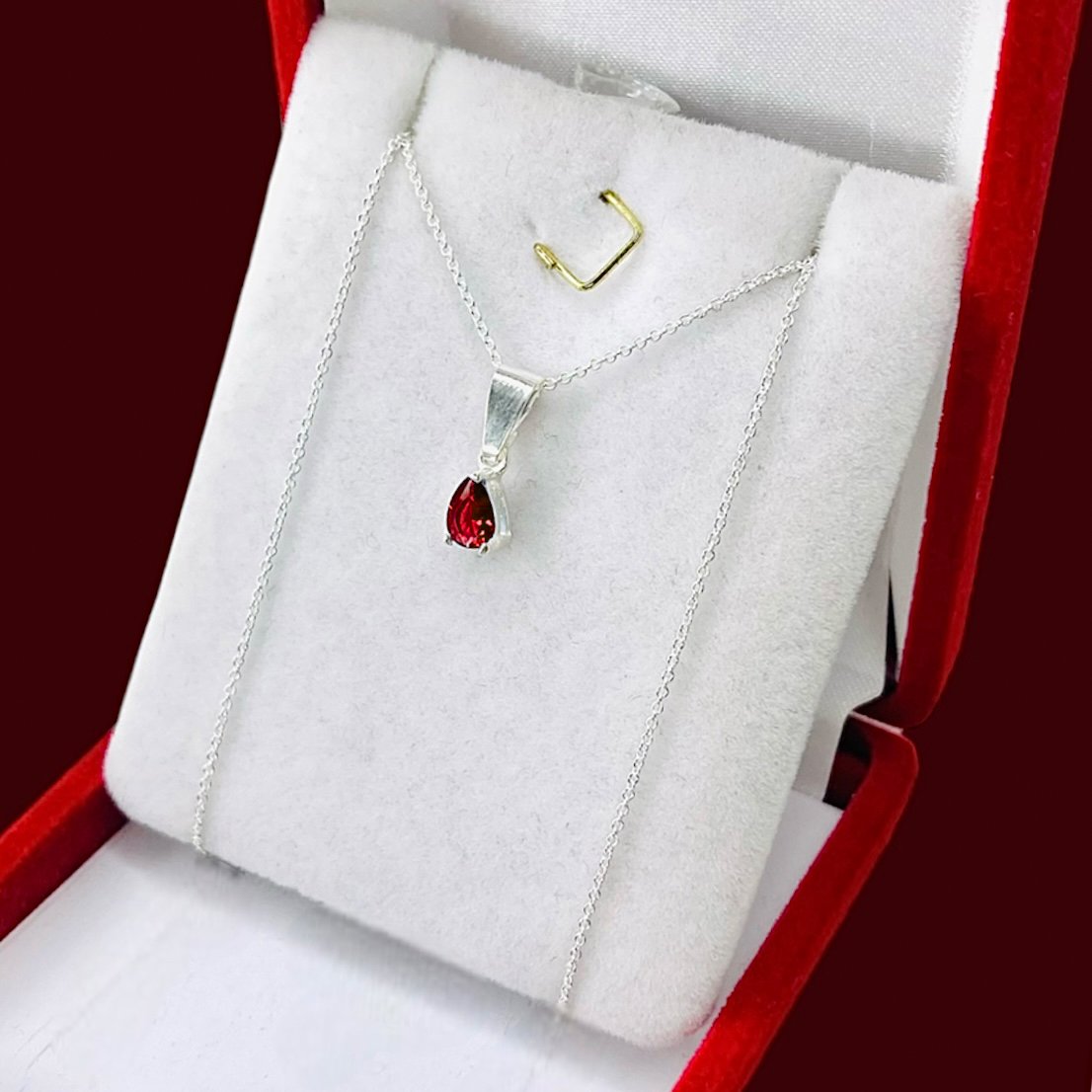 Conjunto Cadena Rolito con dije Gota mini cubic Rojo de Plata 925
