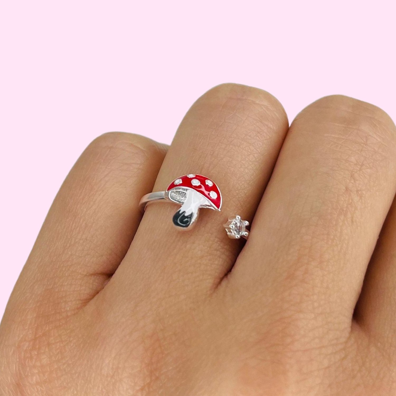 Anillo Honguito esmaltado y cubic blanco de Plata Italiana