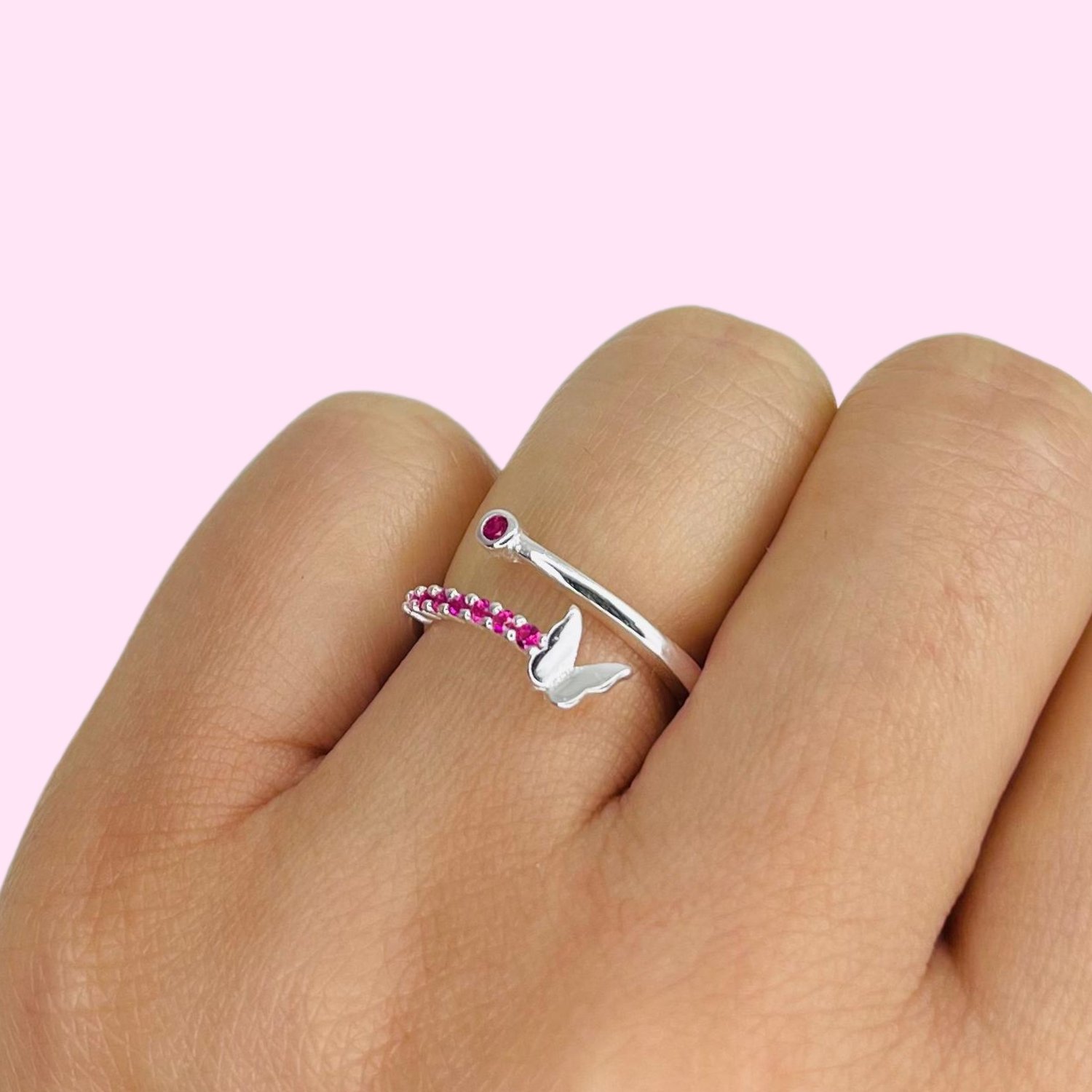 Anillo Vuelo mariposa con cubic Fucsia de Plata Italiana