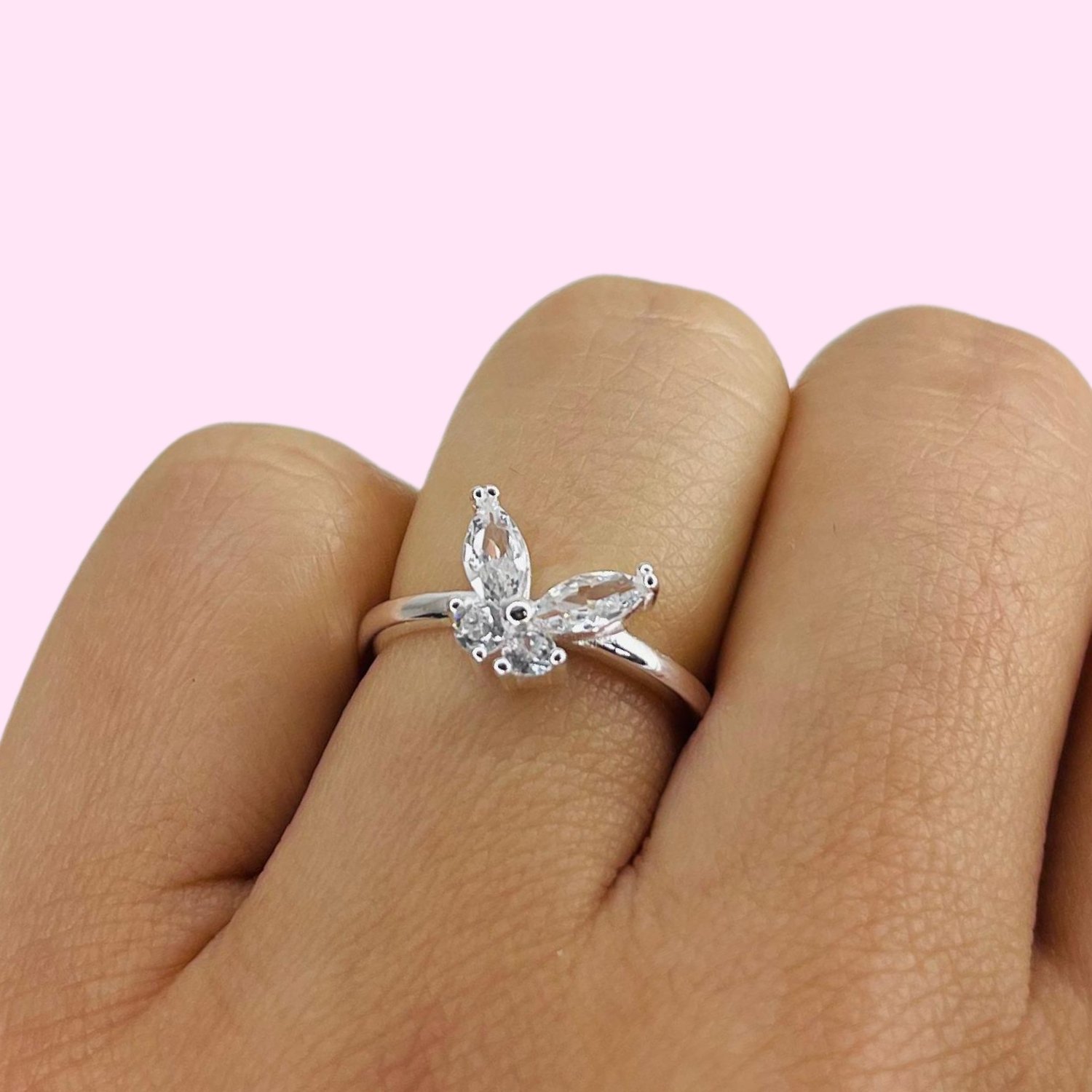 Anillo Mariposa Linda cubic blanco marquesita de Plata Italiana