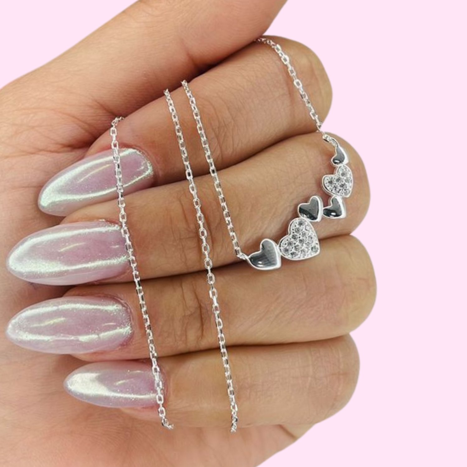 Conjunto Cadena Rolito dije Corazones amor cubic blanco micropave de Plata 925