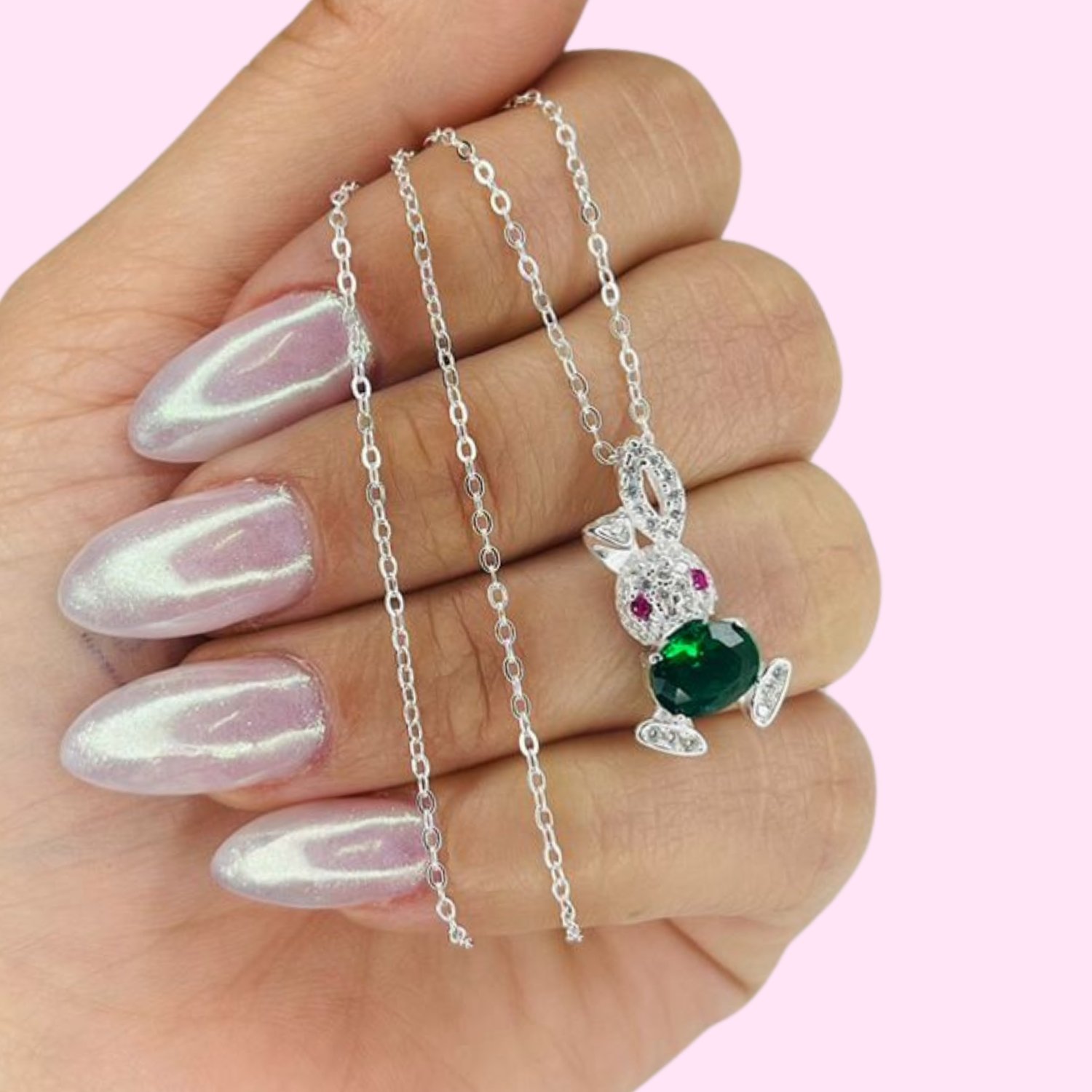 Artículo: KIT 196Conjunto Cadena Rolito dije Conejo de la suerte cubic oval verde