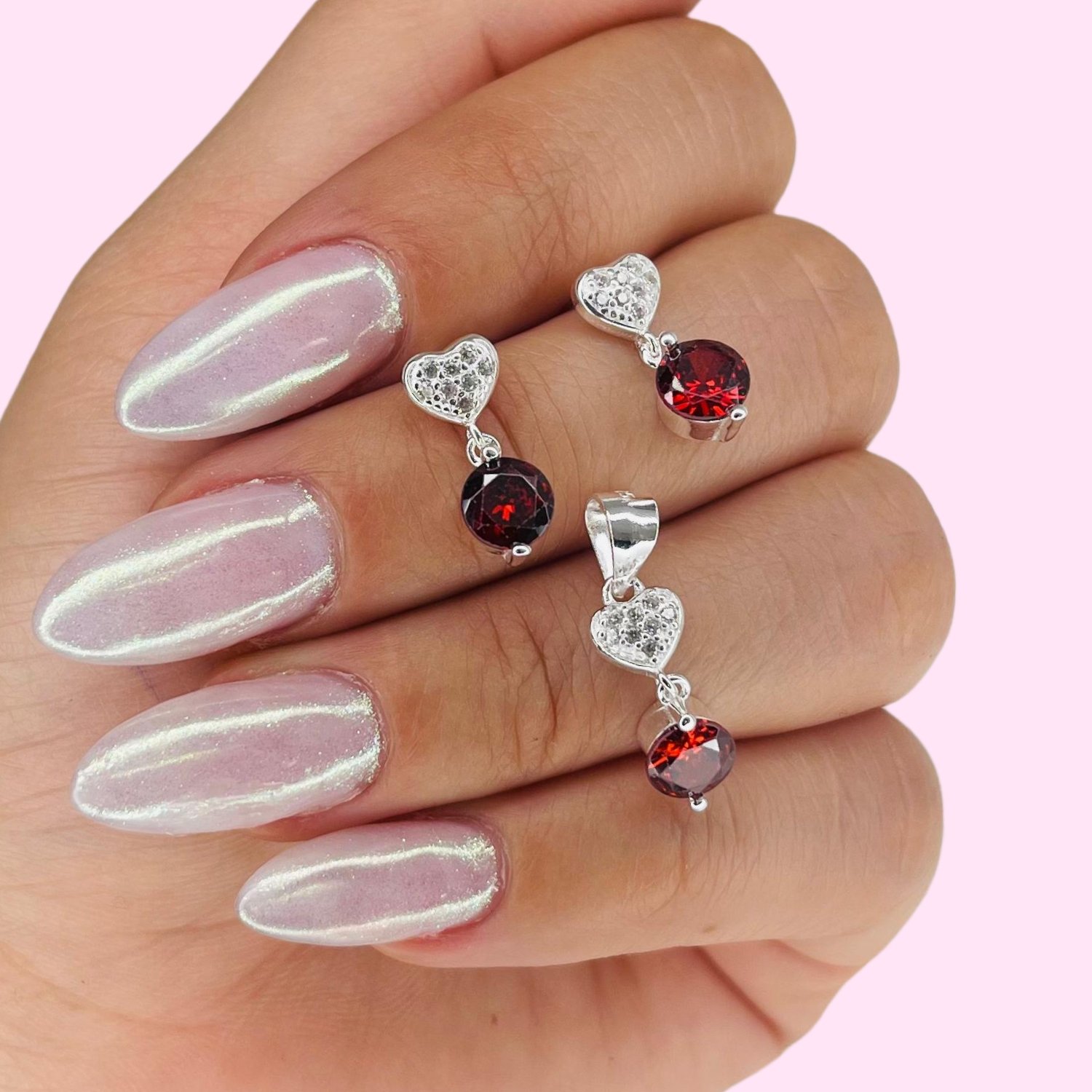 Conjunto Dije y aros Princesa enamorada cubic redondo Bordo de Plata 925