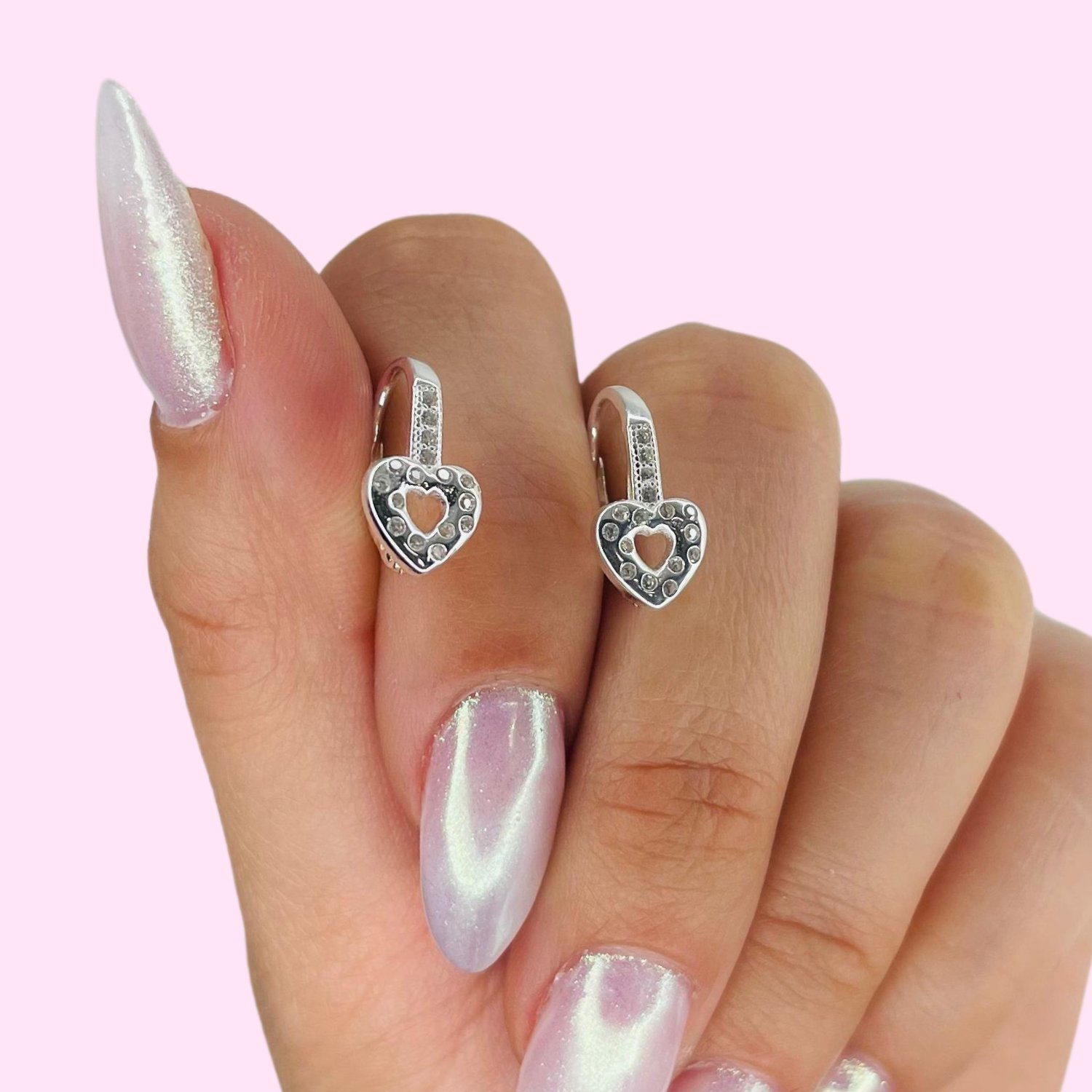 Aros Clip Italiano corazon cubic blanco de Plata 925