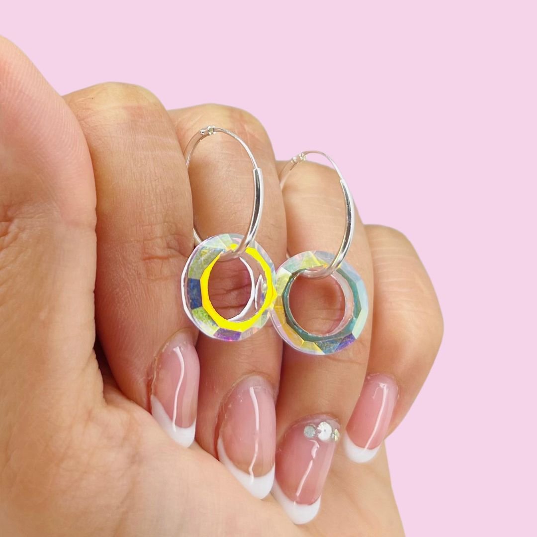 Aros Cubano dona de cristal swarovski Aurora Boreal de Plata Italiana