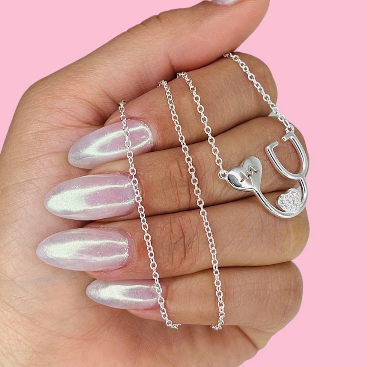 Artículo: KIT 208Conjunto cadena rolito redondo con dije Estetoscopio amo la medicina cubic blanco