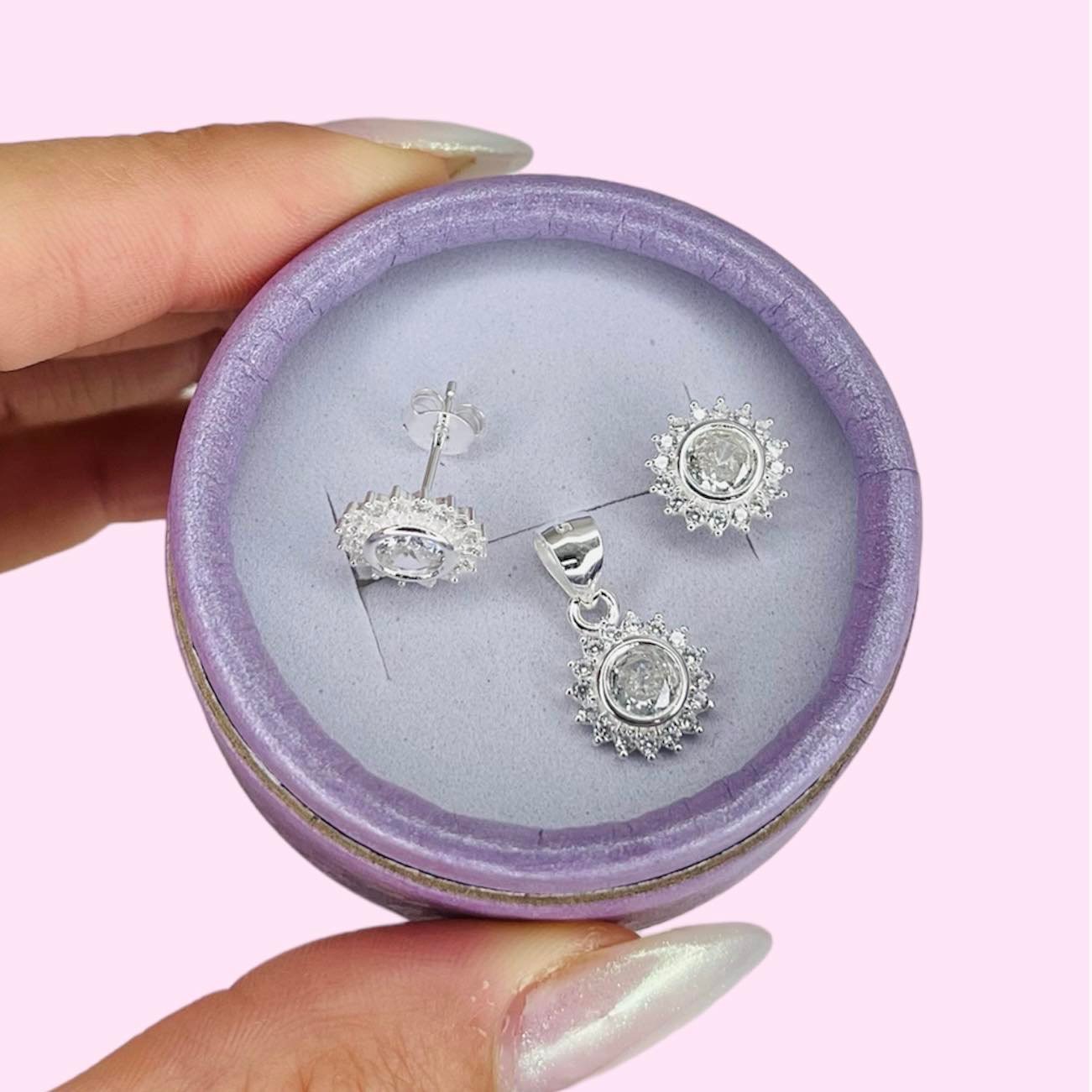 Artículo: KIT 221Conjunto aros y dije sol cubic blanco