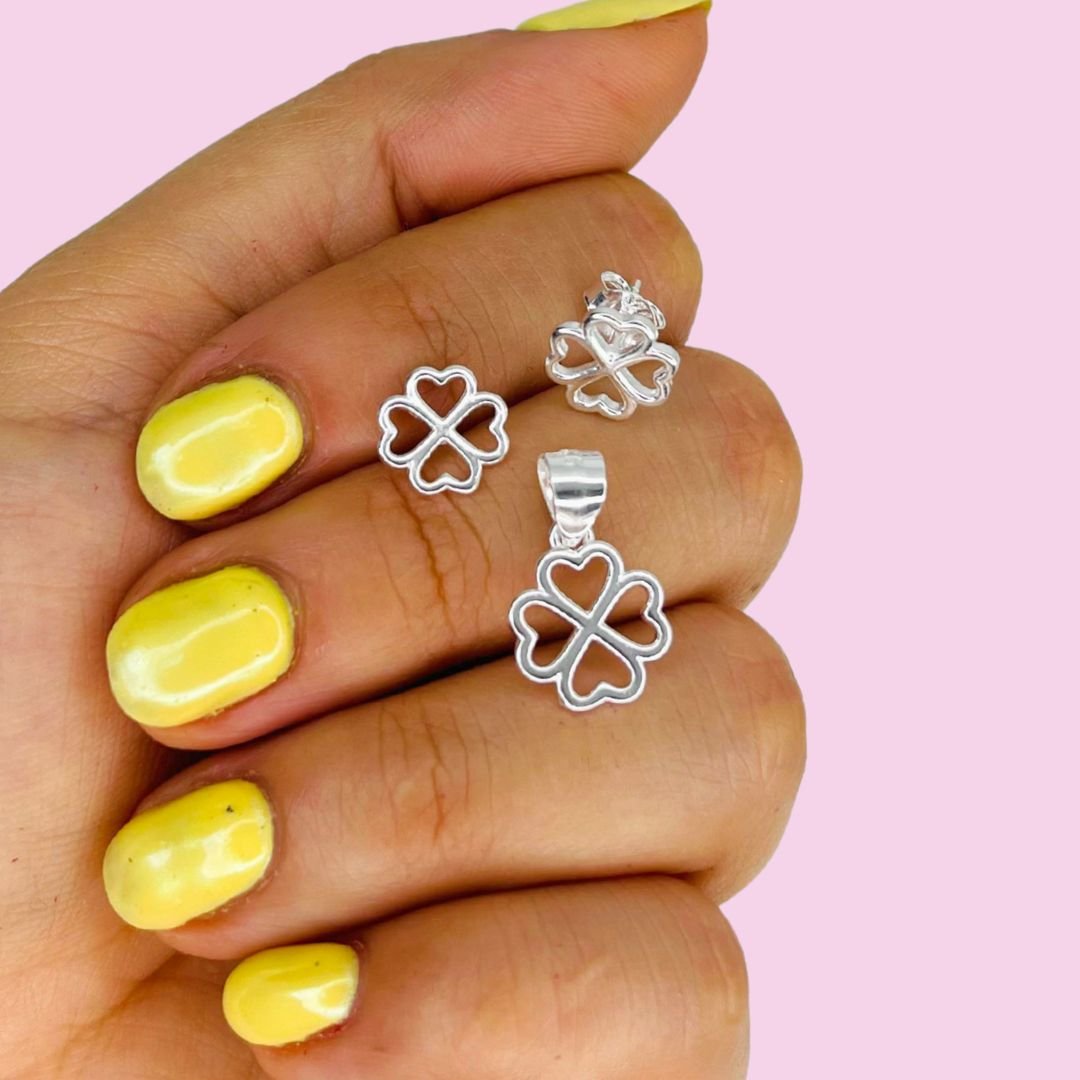 Conjunto aros y dije trebol 4 hojas calada de Plata 925