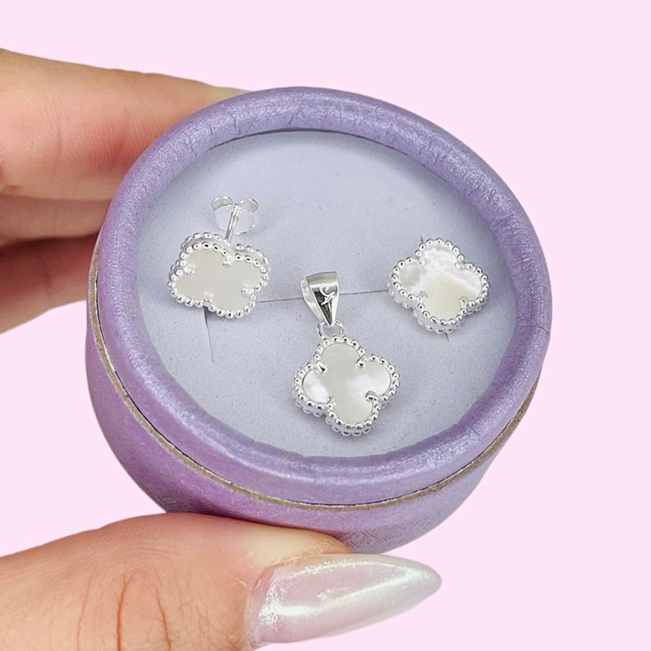 Artículo: KIT 234-2Conjunto aros y dije trebol van cleef nacar