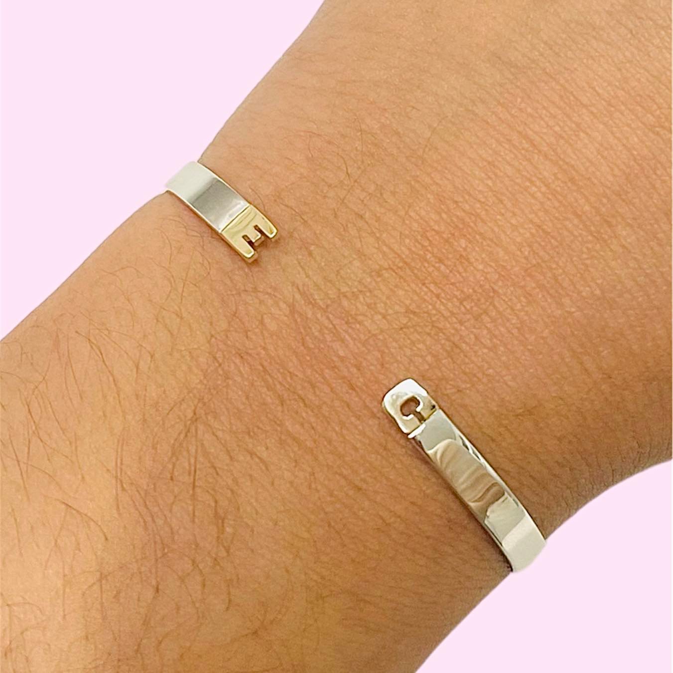 Esclava Maciza con 2 iniciales chicas Personalizable de Plata y Oro