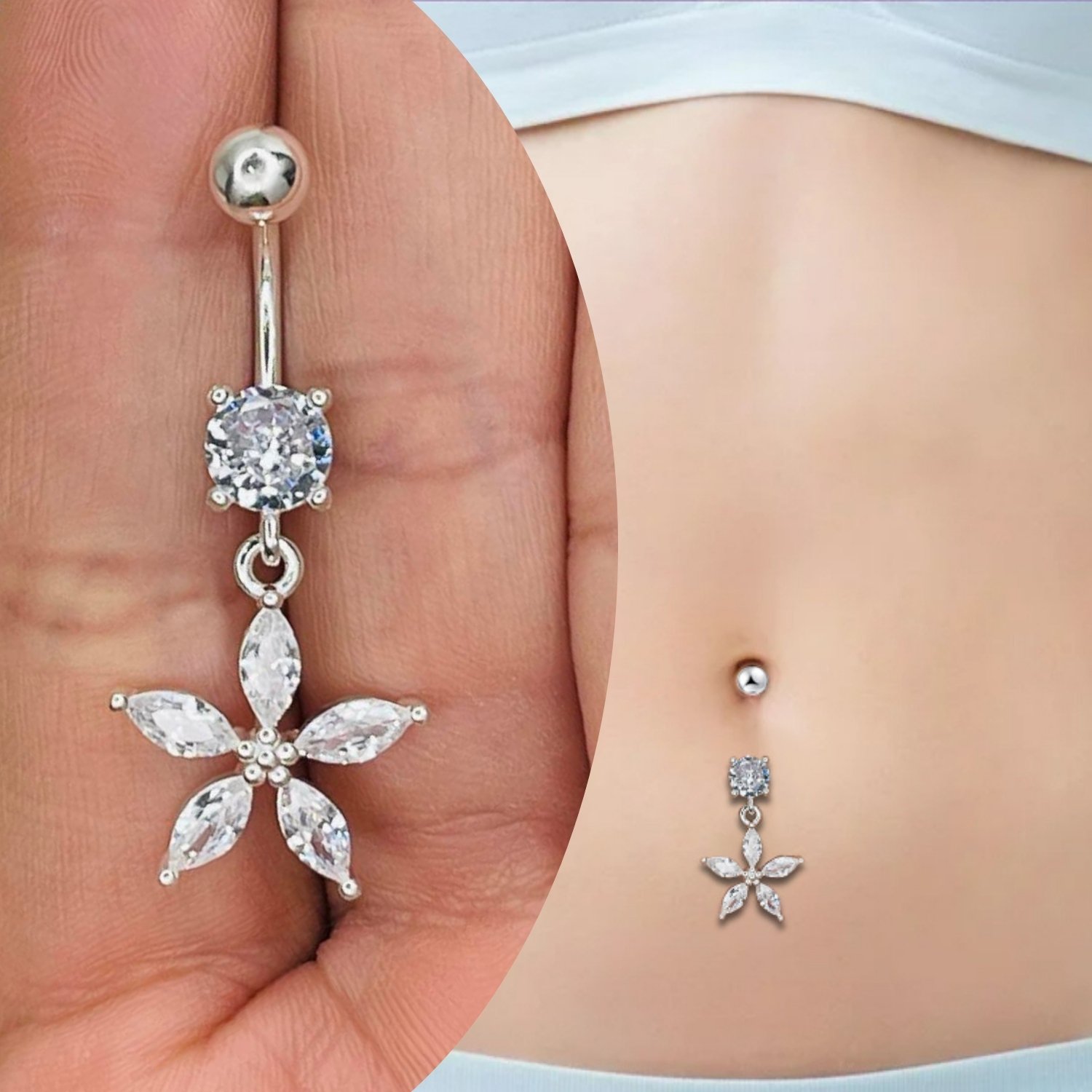 Piercing Ombligo Flor puntiaguda cubic blanco de Plata 925