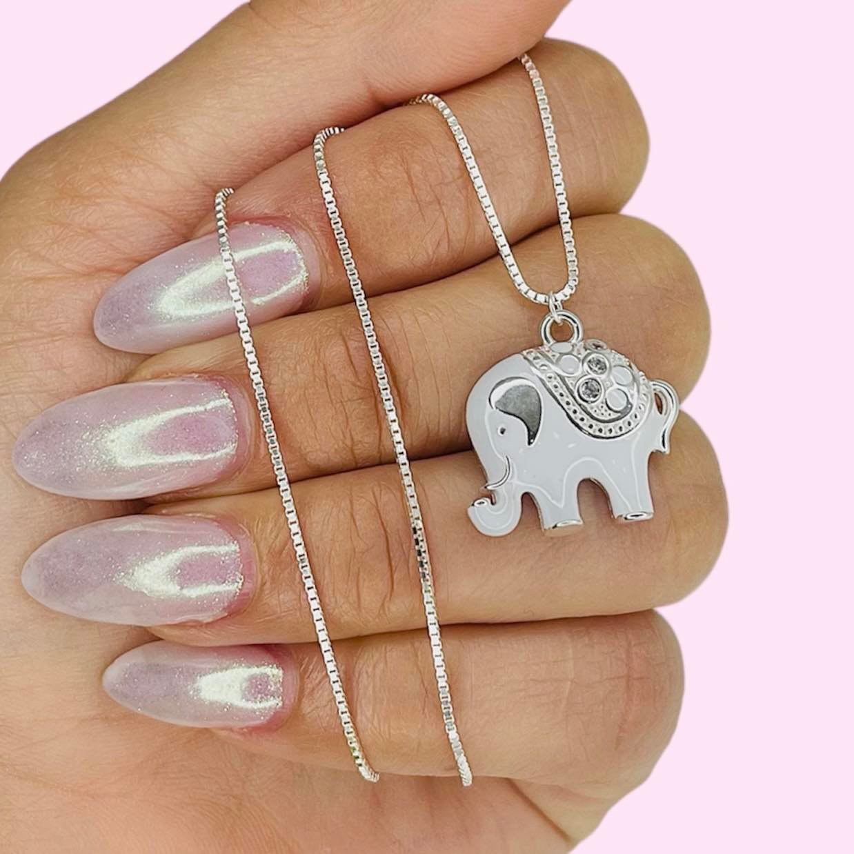 Artículo: KIT 227Conjunto cadena veneziana cuadrada y dije elefante hindu esmaltado blanco