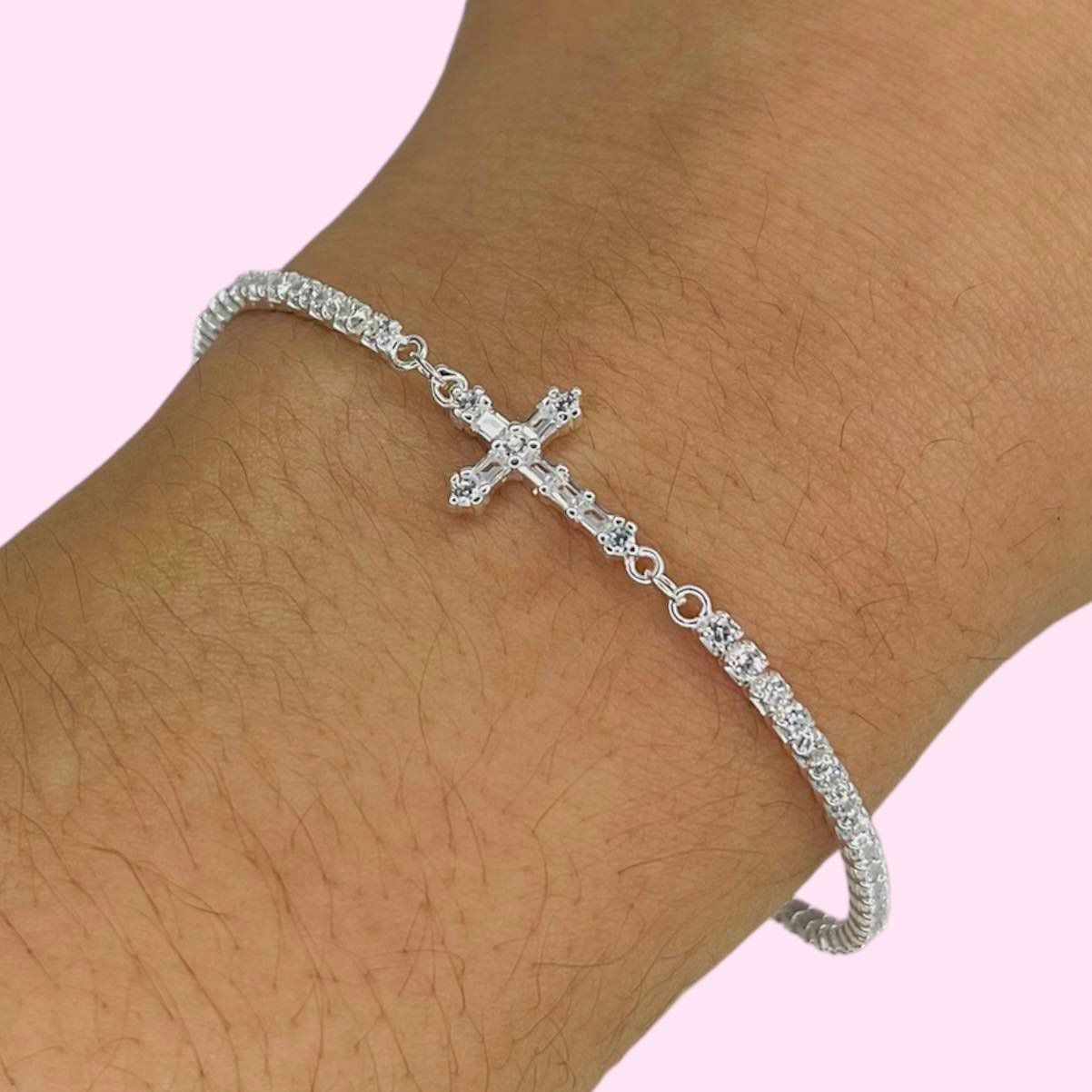Artículo: PS 370Pulsera Lujo cruz y cubic blanco