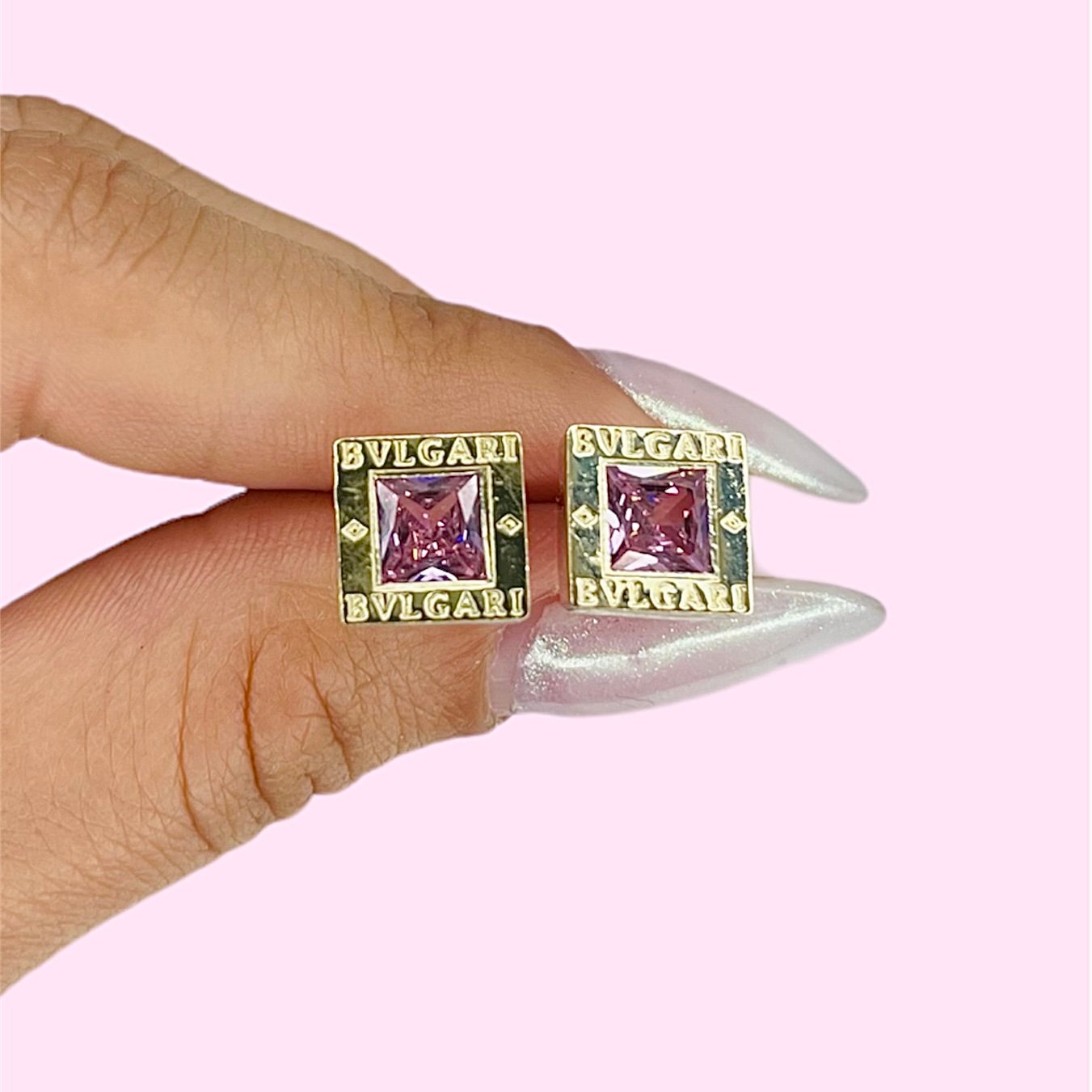 Aros BVL masizo cubic cuadrado rosa de Plata y Oro