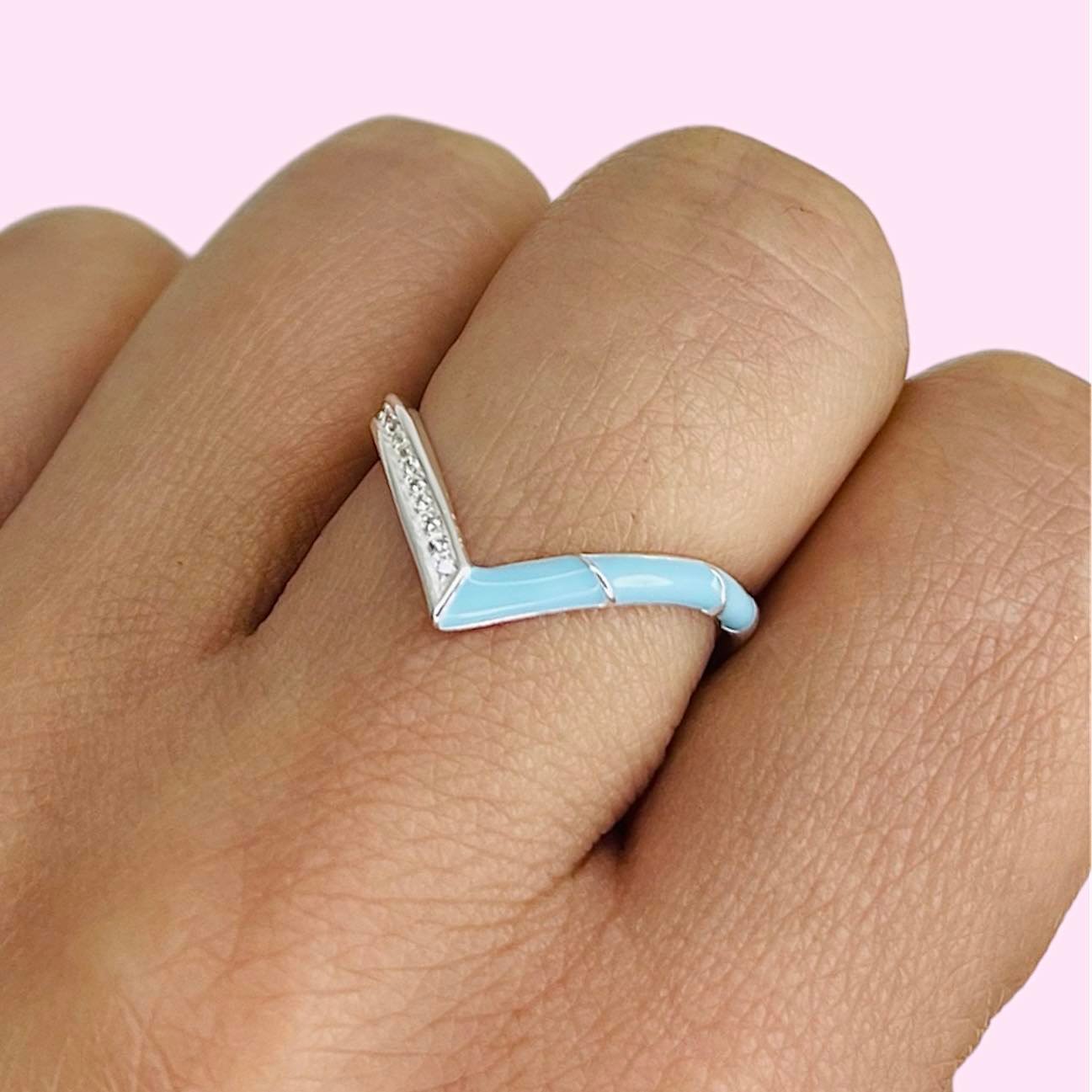Artículo: AP 564Anillo Forma v interno y extreno esmaltado celeste