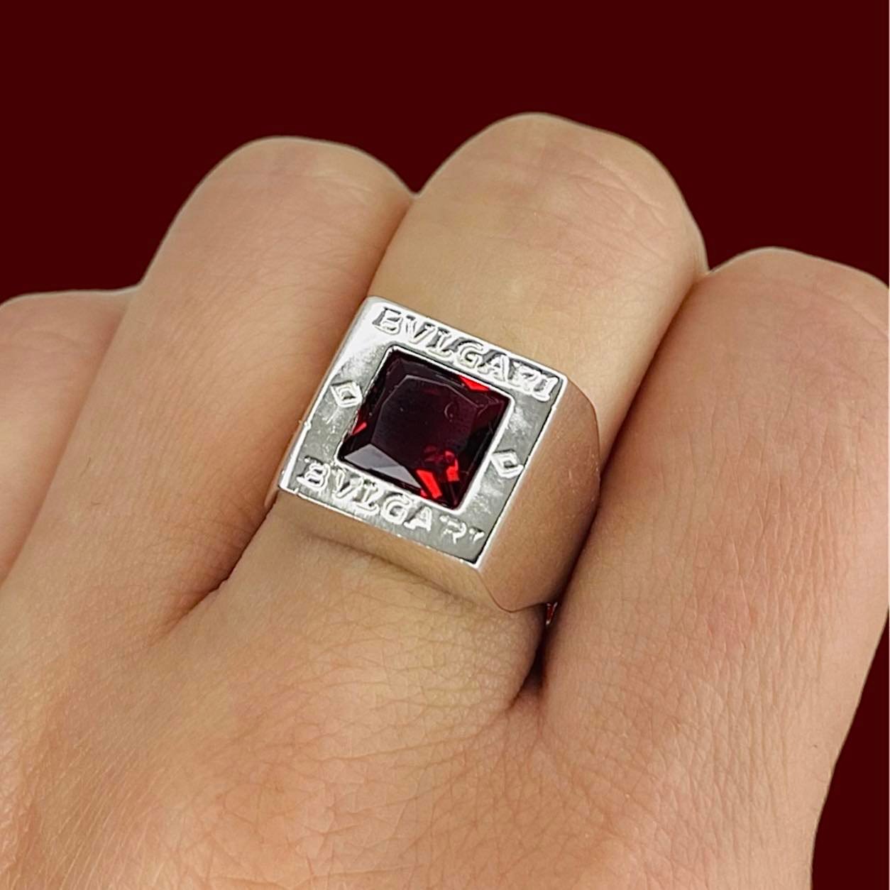 Anillo Bvl Cuadrado Importante con cubic Rojo de Plata 925