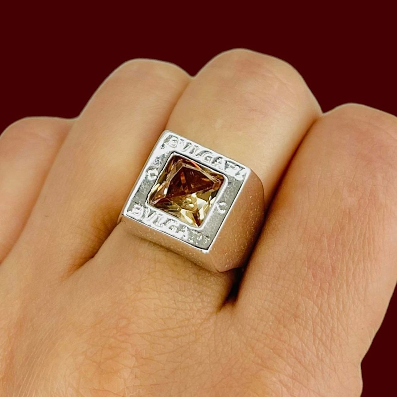 Anillo Bvl Cuadrado Importante con cubic Ambar de Plata 925