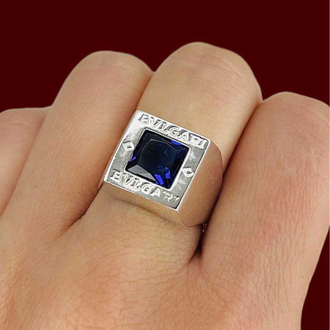 Anillo Bvl Cuadrado Importante con cubic Azul de Plata 925