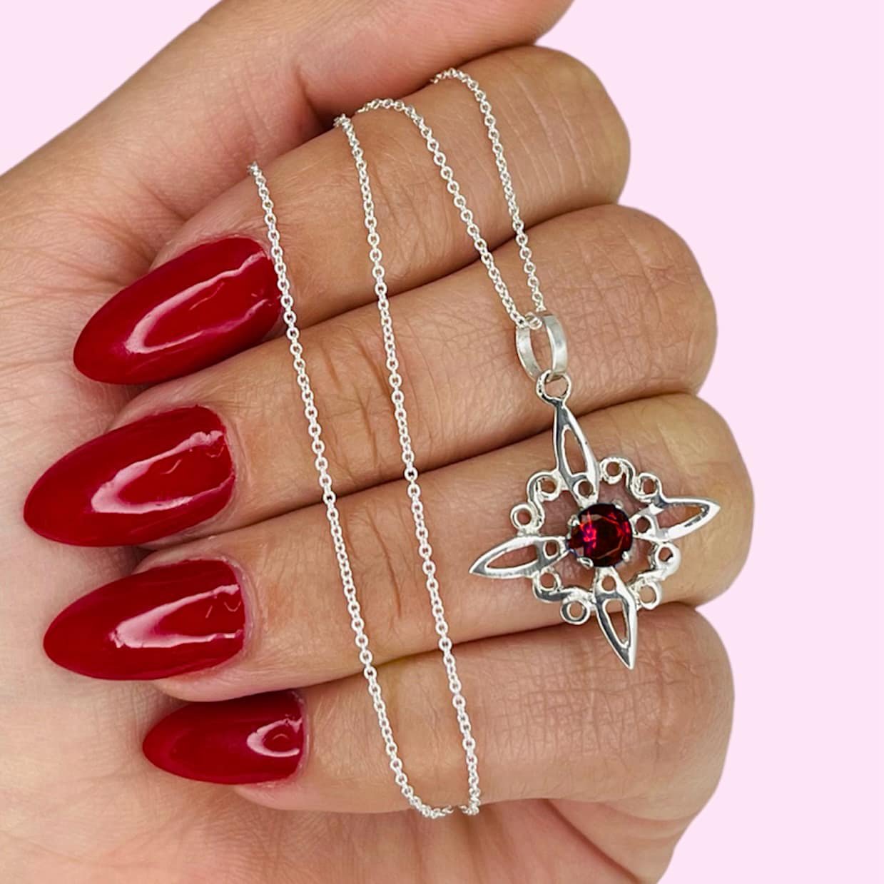 Conjunto cadena rolito y dije nudo de bruja cubic redondo rojo de Plata 925
