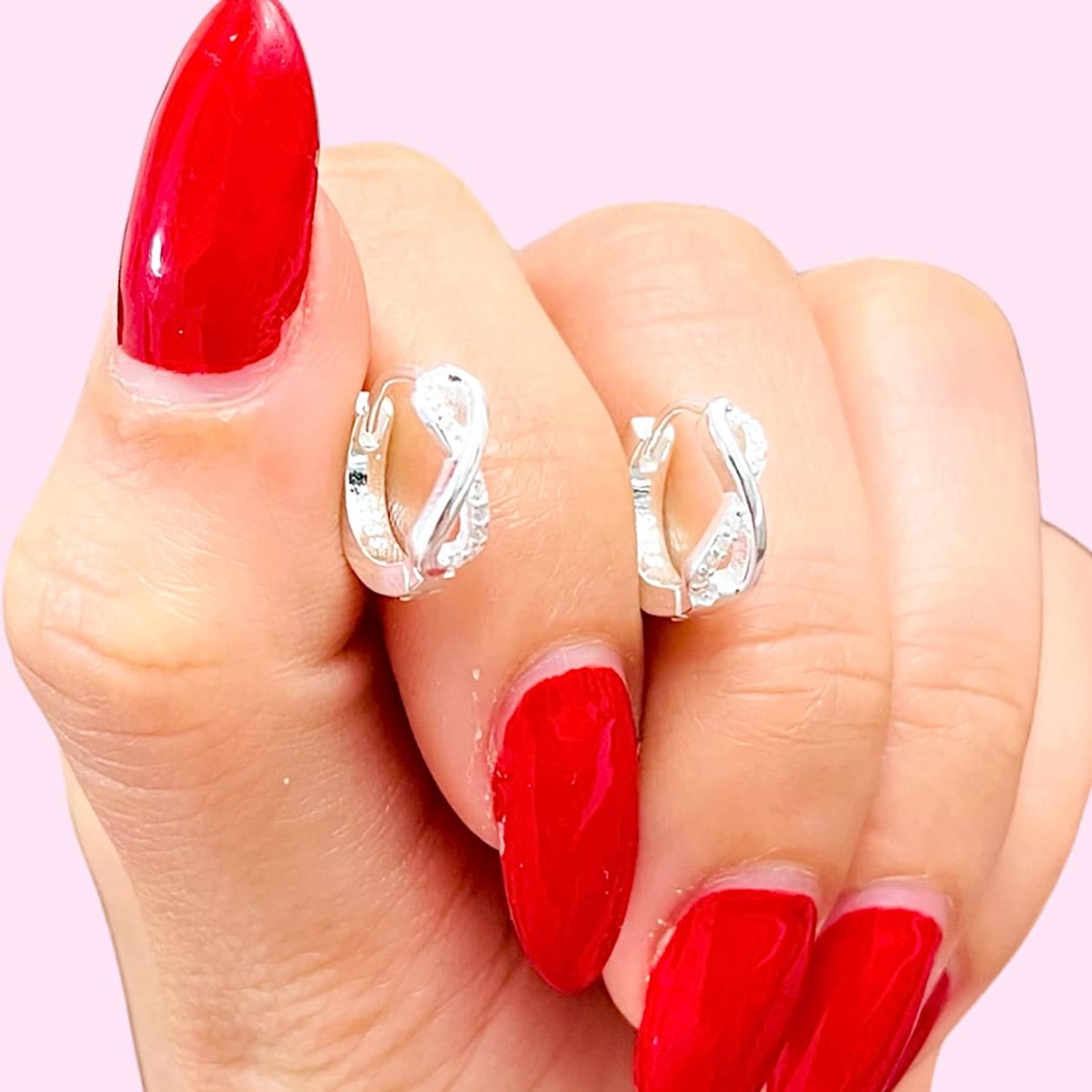Aros clip italiano infinito cubic blanco de Plata 925