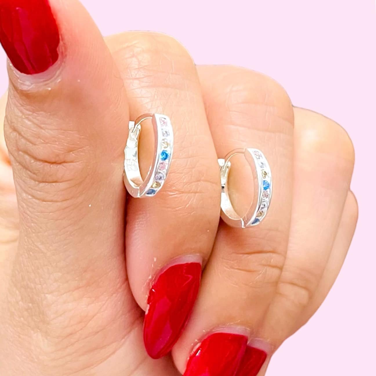 Aros clip italiano Medio sinfin cubic multicolor de Plata 925