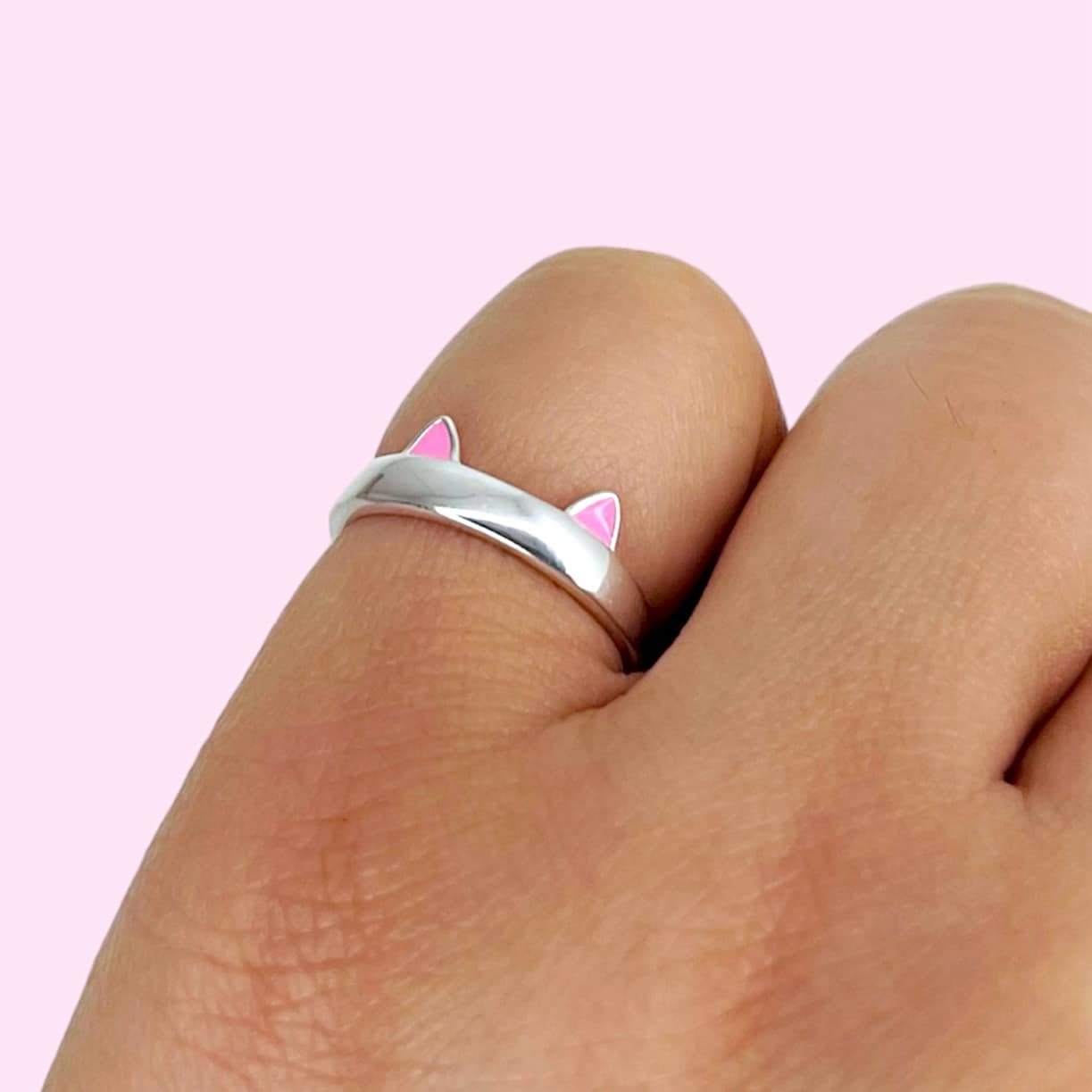 Anillo Orejitas de Gato / Neko rosa esmaltado para nena de Plata 925