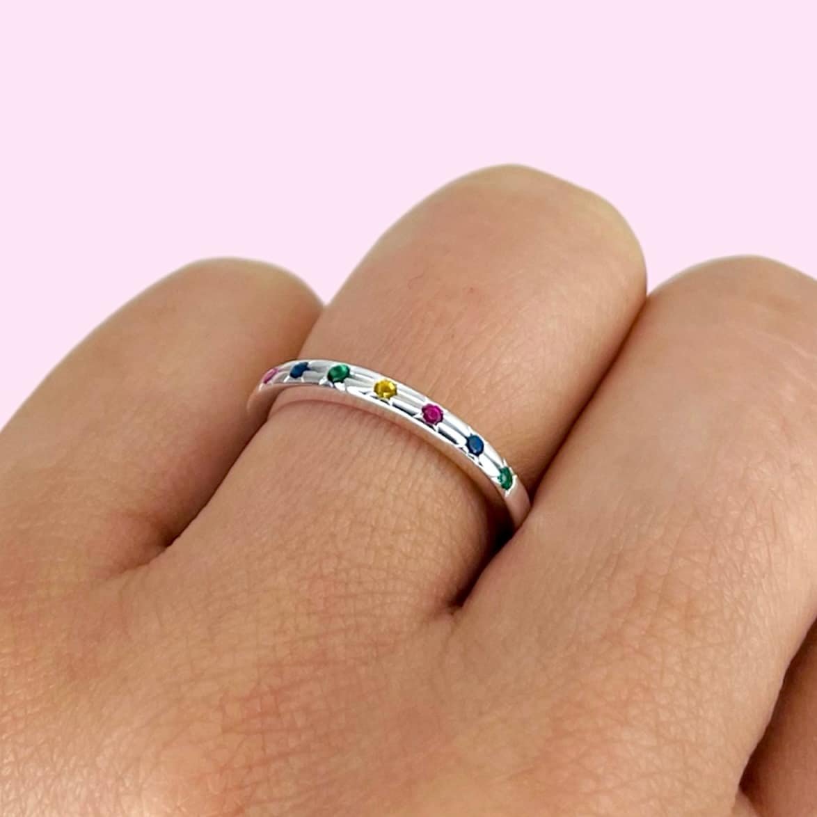 Anillo arcoiris cubic multicolor micropave de Plata Italiana