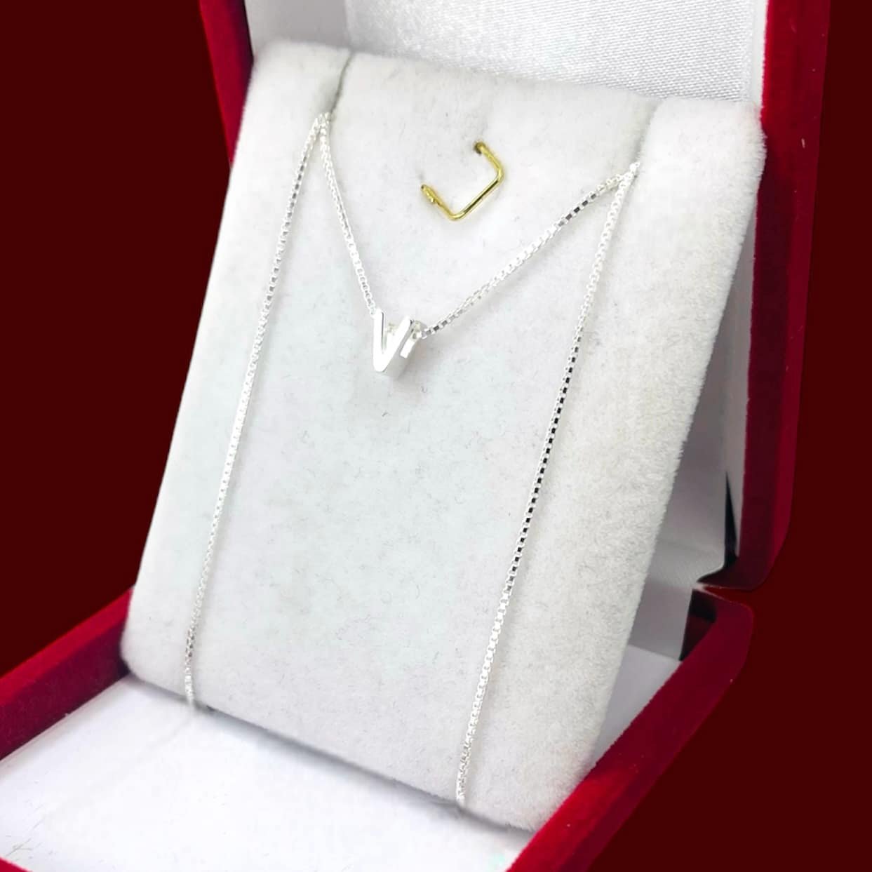 Conjunto cadena veneziana cuadrada con dije inicial V de Plata Italiana