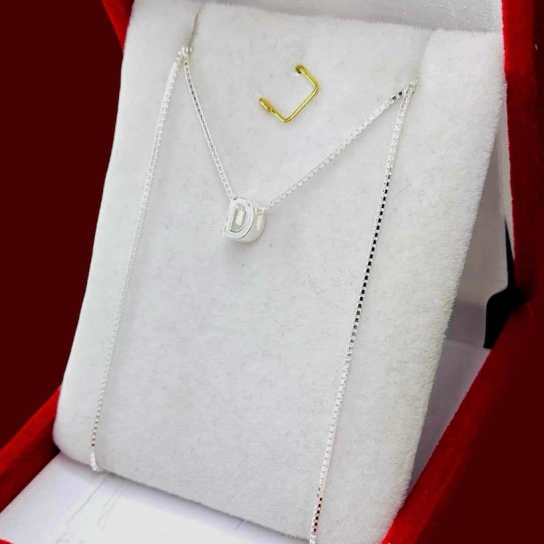 Conjunto cadena veneziana cuadrada con dije inicial D de Plata Italiana