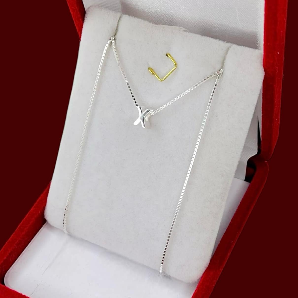 Conjunto cadena veneziana cuadrada con dije inicial X de Plata Italiana