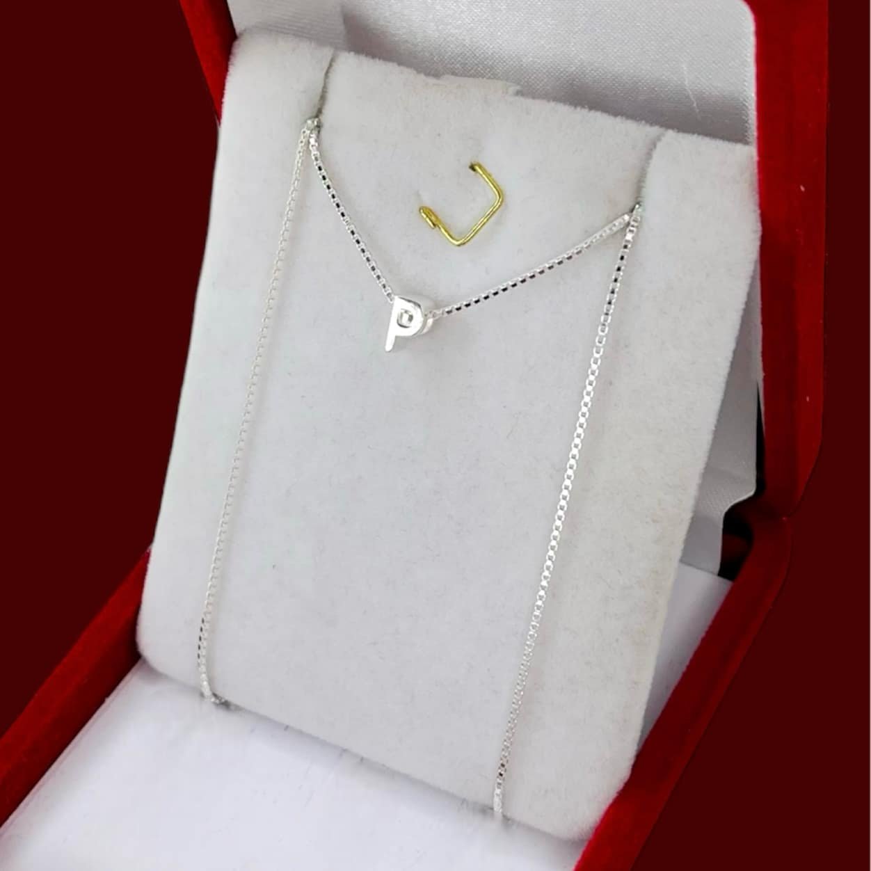 Conjunto cadena veneziana cuadrada con dije inicial P de Plata Italiana