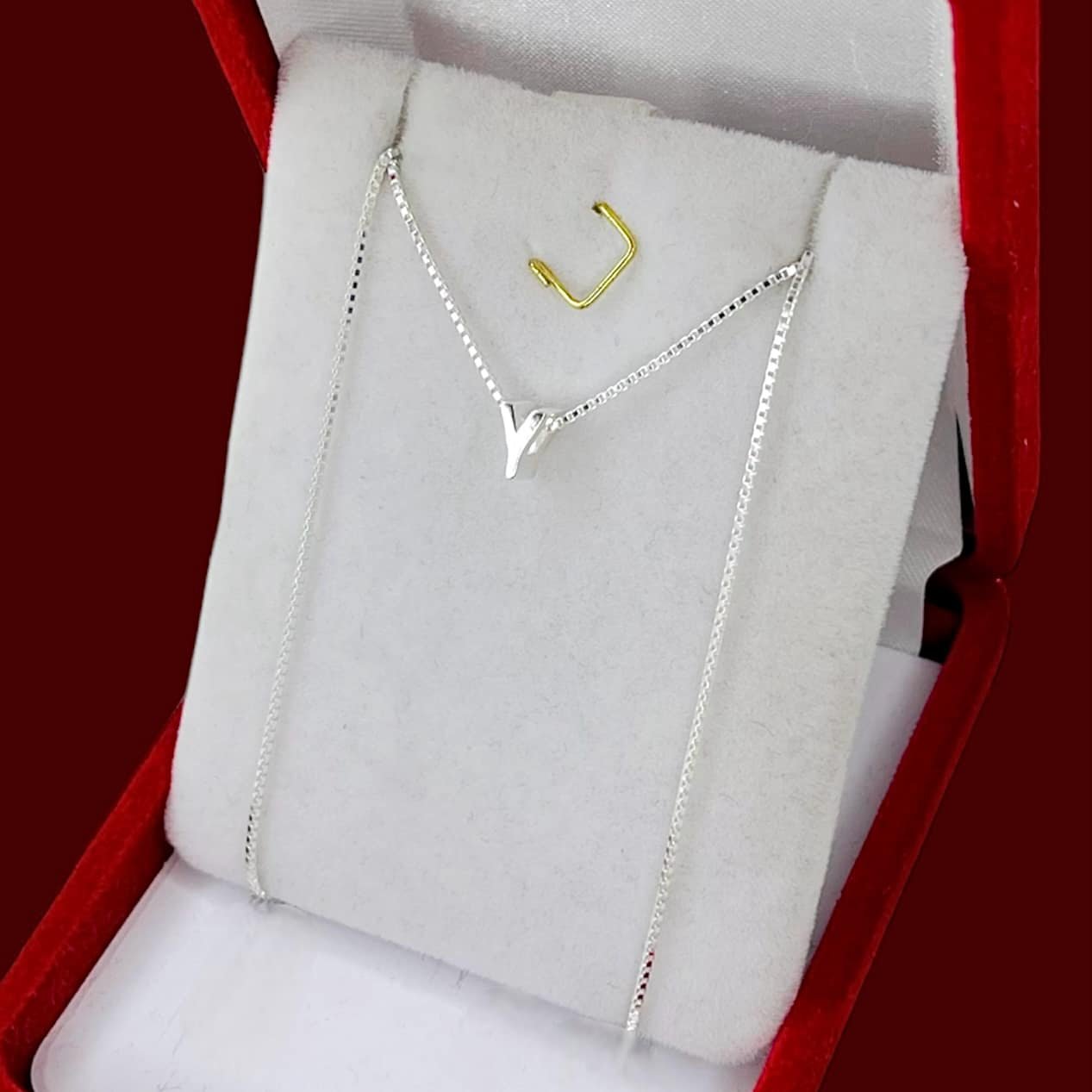 Conjunto cadena veneziana cuadrada con dije inicial Y de Plata Italiana