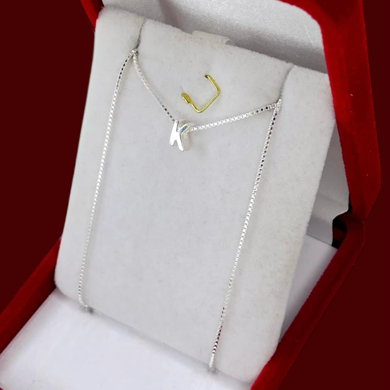 Conjunto cadena veneziana cuadrada con dije inicial K de Plata Italiana